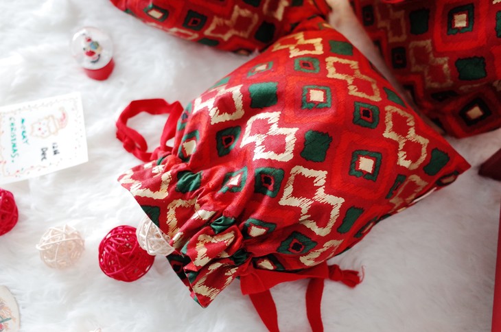 HUGOJIRO中号束口袋插画圣诞烫金菱纹