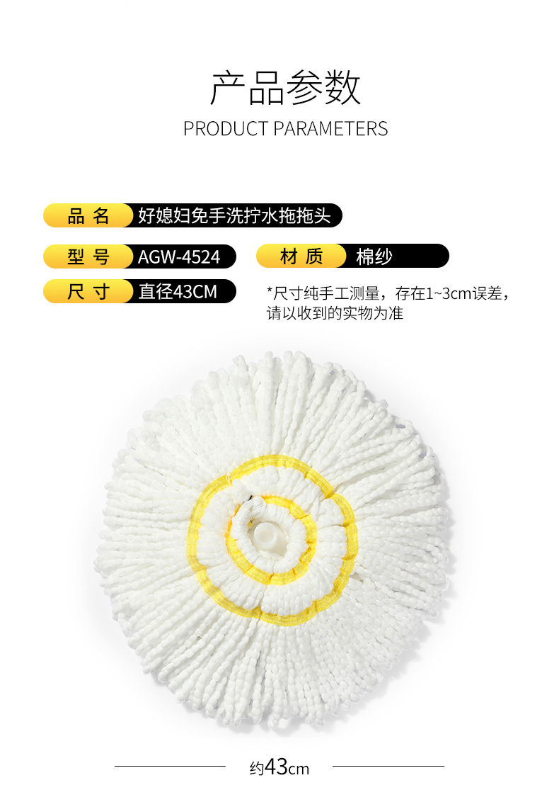 好媳妇U系列4524自拧水拖把替换头家用拖布头配件一件装 吸水拖布