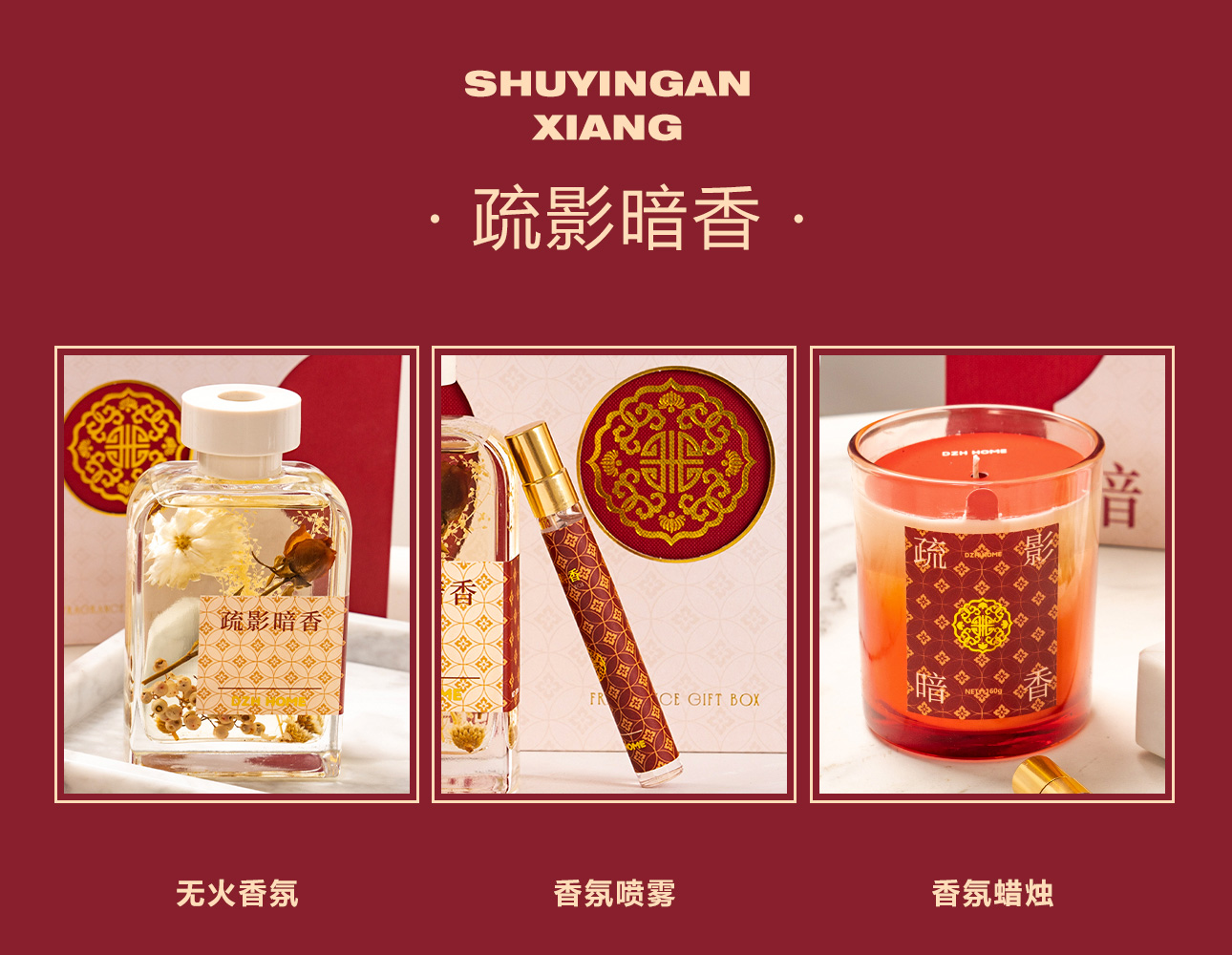 节日礼盒 | 疏影暗香礼盒香氛 无火藤条挥发香薰蜡烛礼盒生日礼物婚礼伴手礼