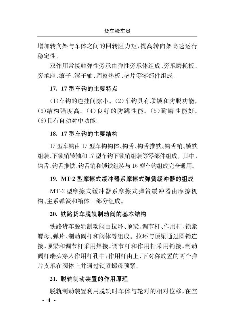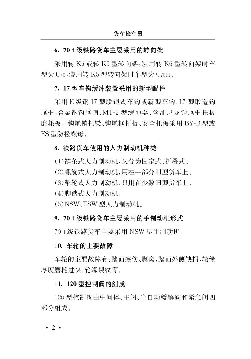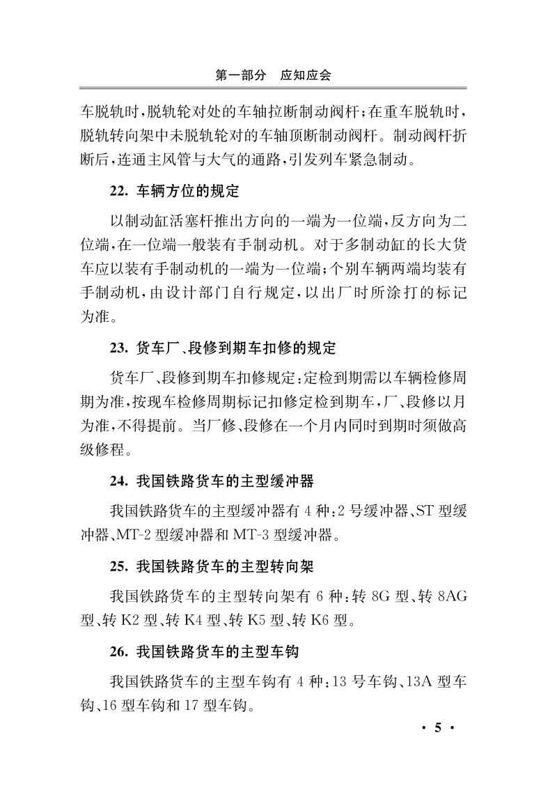 本书由《铁路职工岗位应知应会培训丛书》编委会编写,本书紧密结合现场作业实际,充分依据现行基本规章和作业标准,融入新技术、新设备、新工艺、新规章等“四新”知识,突出货车检车员岗位作业实作技能和应急处置,符合现场实际、职工作业情况。全书分为三个部分:应知应会、必知必会和实作技能。全书将货车检车员日常需要了解和掌握的问题及技能进行了整理,具有较强的实用性。本书可作为货车检车员脱产培训教材,也可供新职人员学习使用。