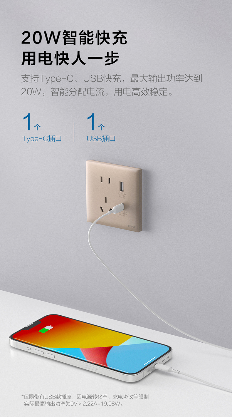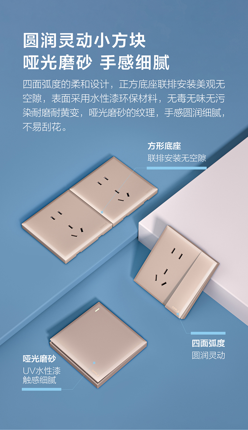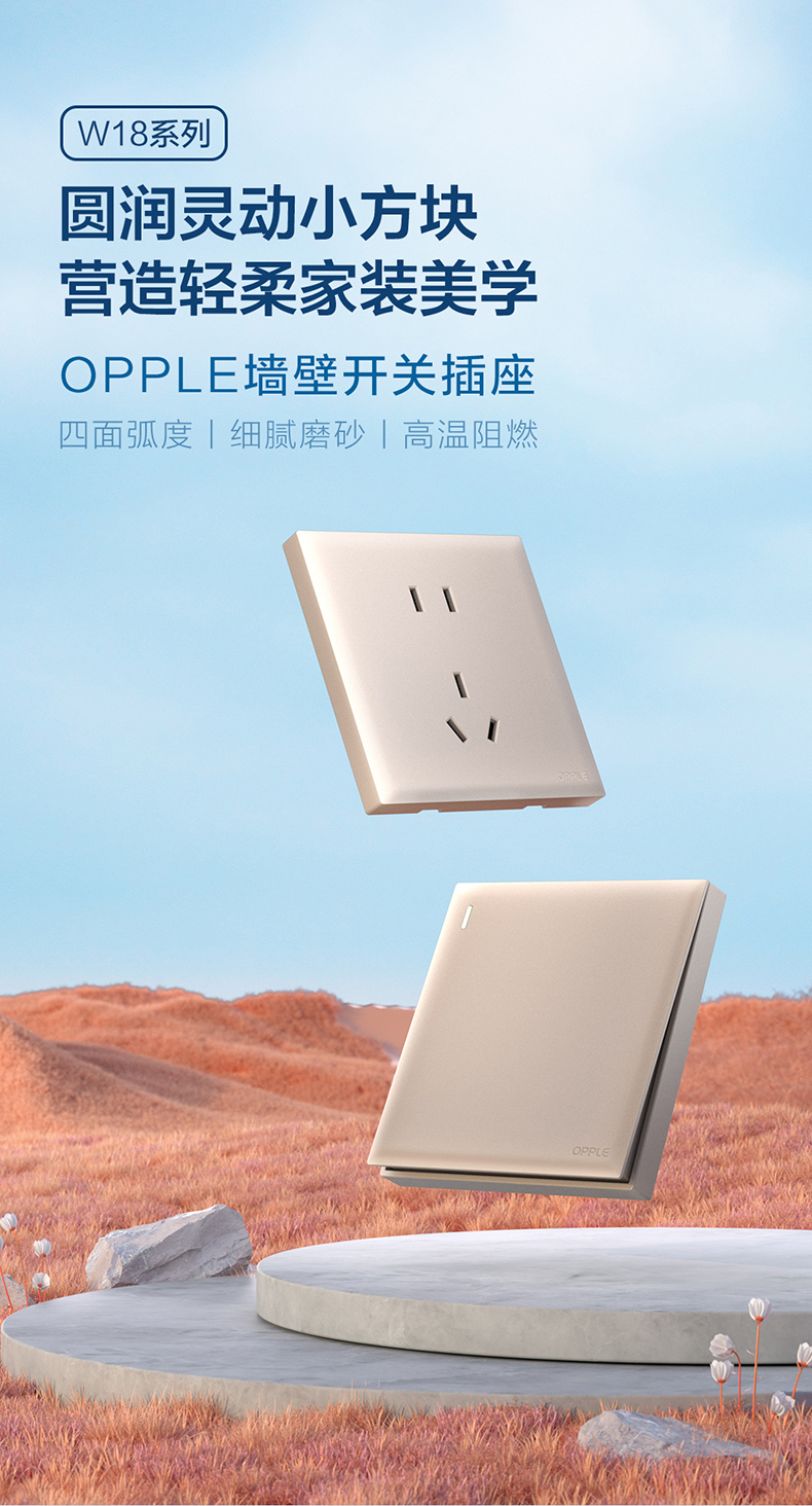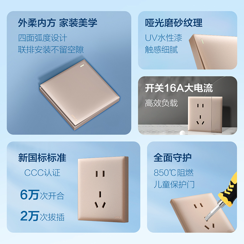 欧普(OPPLE)开关插座W18悦灵晨夕金usb空调16A插座五孔10A面板暗装二开多控