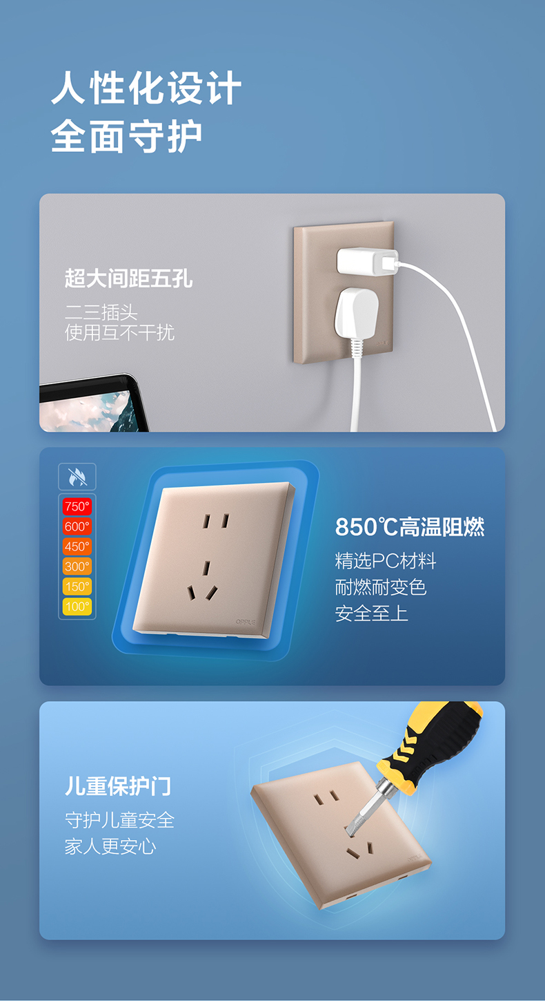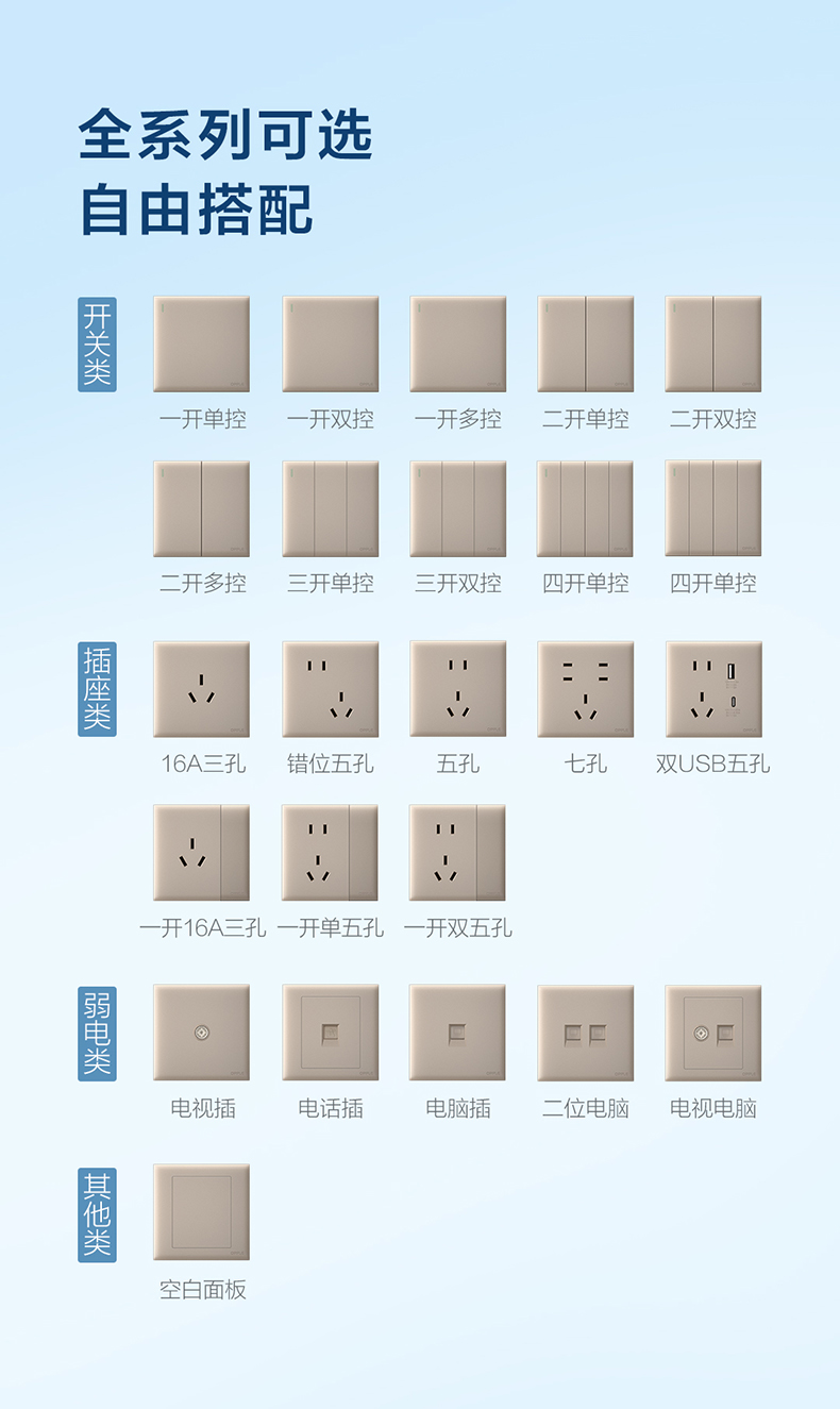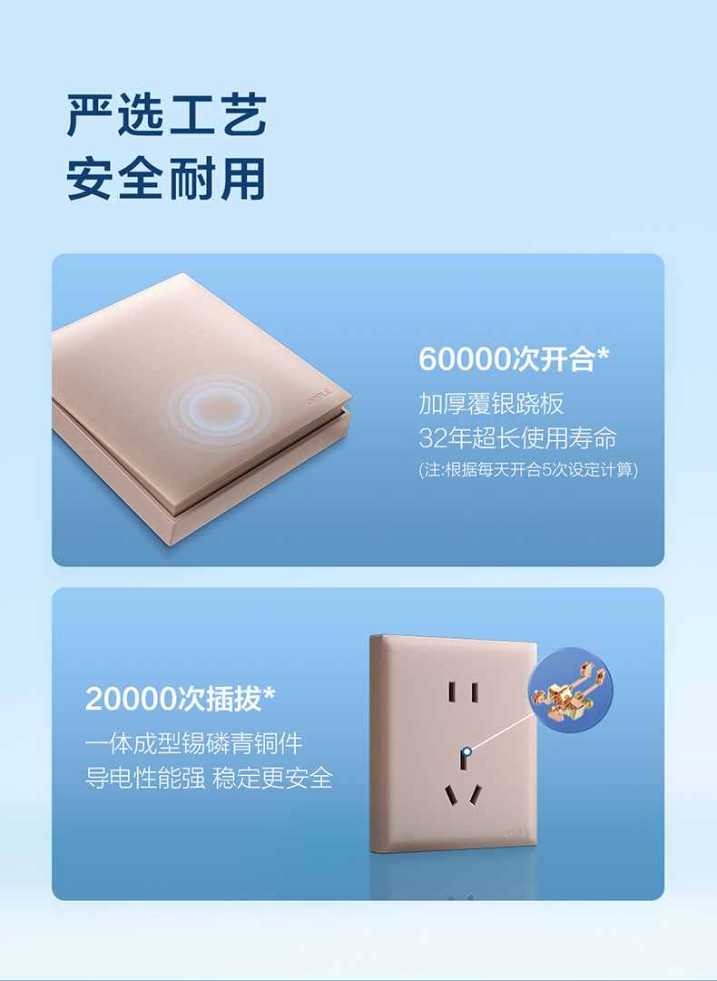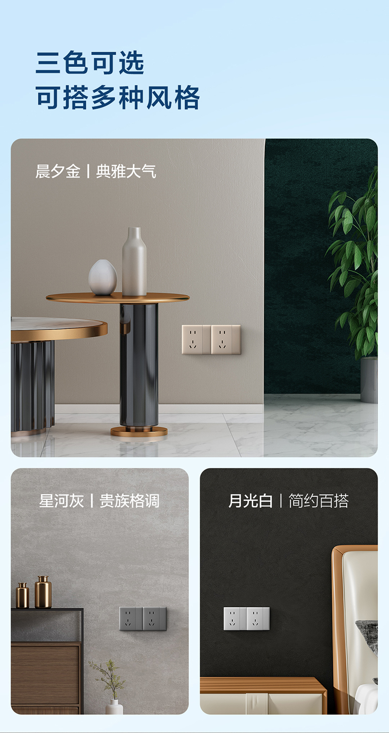 欧普(OPPLE)开关插座W18悦灵晨夕金usb空调16A插座五孔10A面板暗装二开多控
