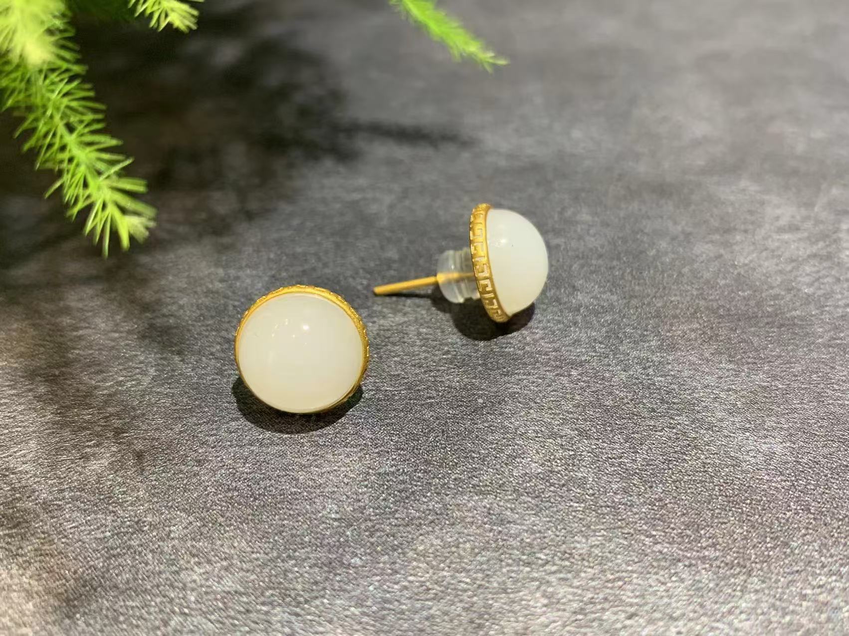 【御珠宫坊】金镶羊脂白玉耳钉