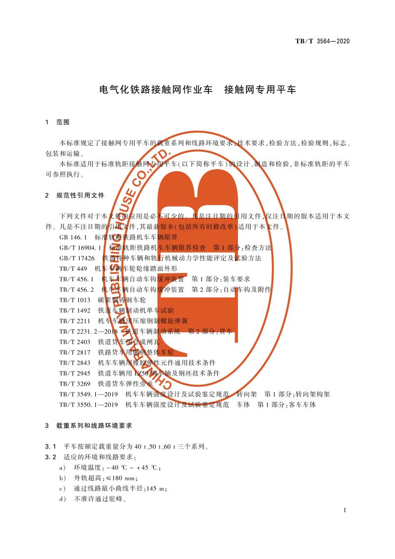 15113.6143 电气化铁路接触网作业车 接触网专用平车 TB/T 3564-2020