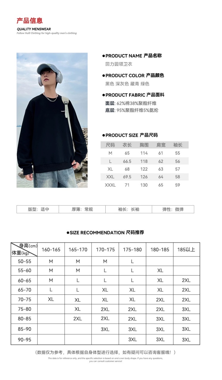 回力卫衣男圆领重磅宽松运动休闲打底衫2025新款春秋季长袖潮上衣