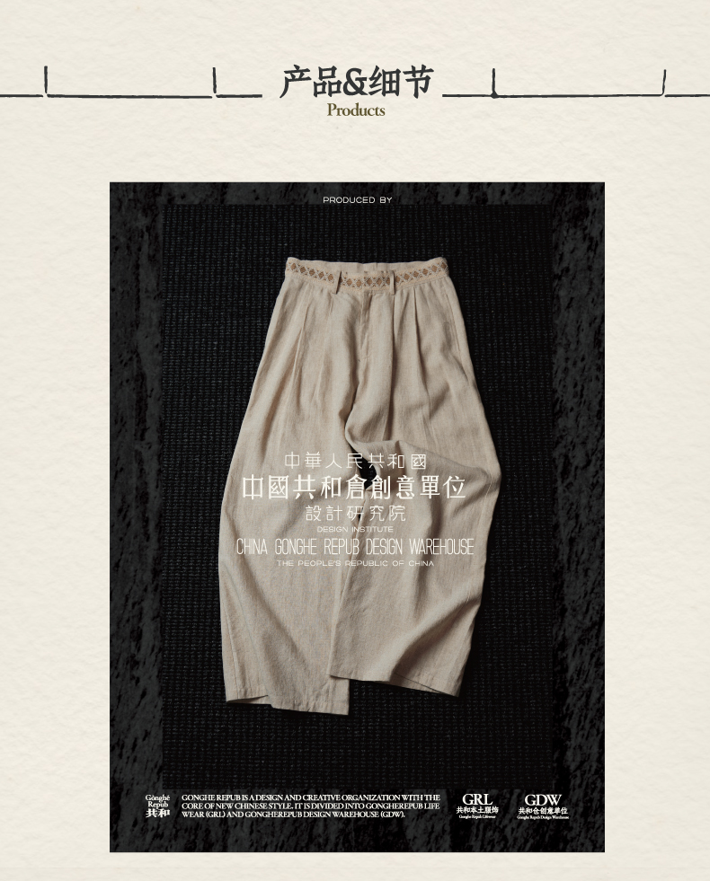共和GongheRepub/GH24014/花边腰棉麻裤
