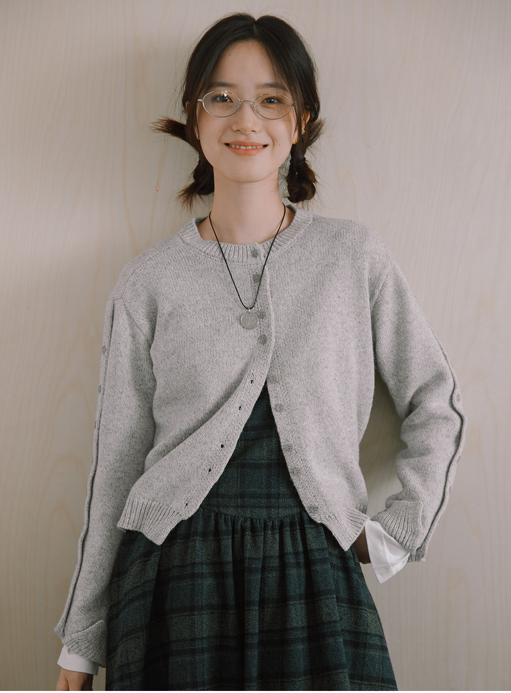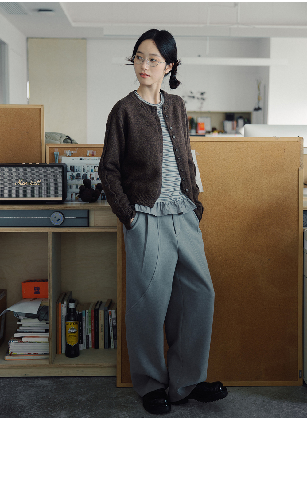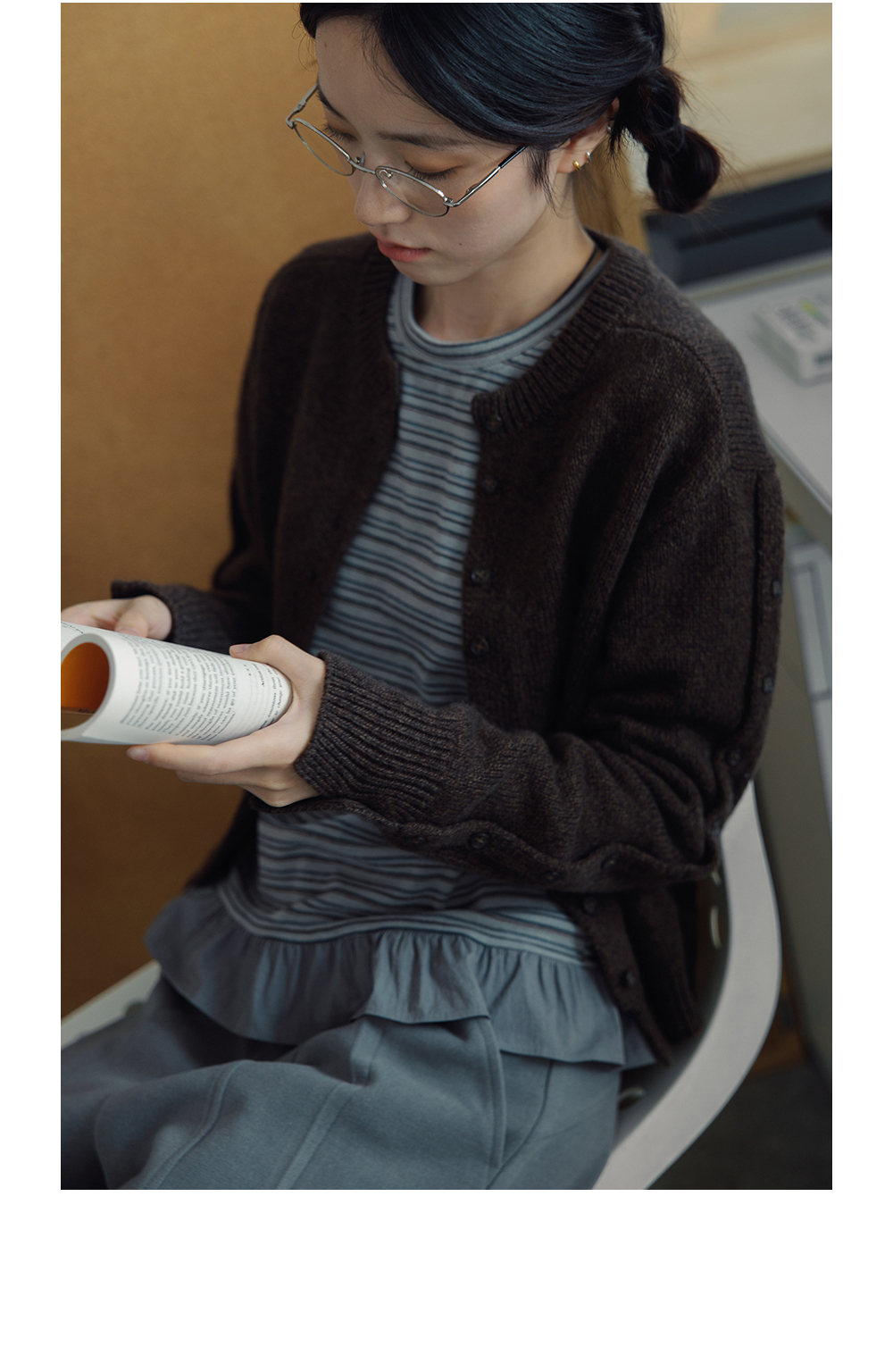 步履不停/4D13237C/基础款圆领灰色棕色羊毛短款针织开衫毛衣