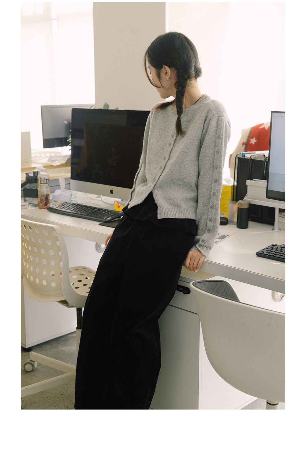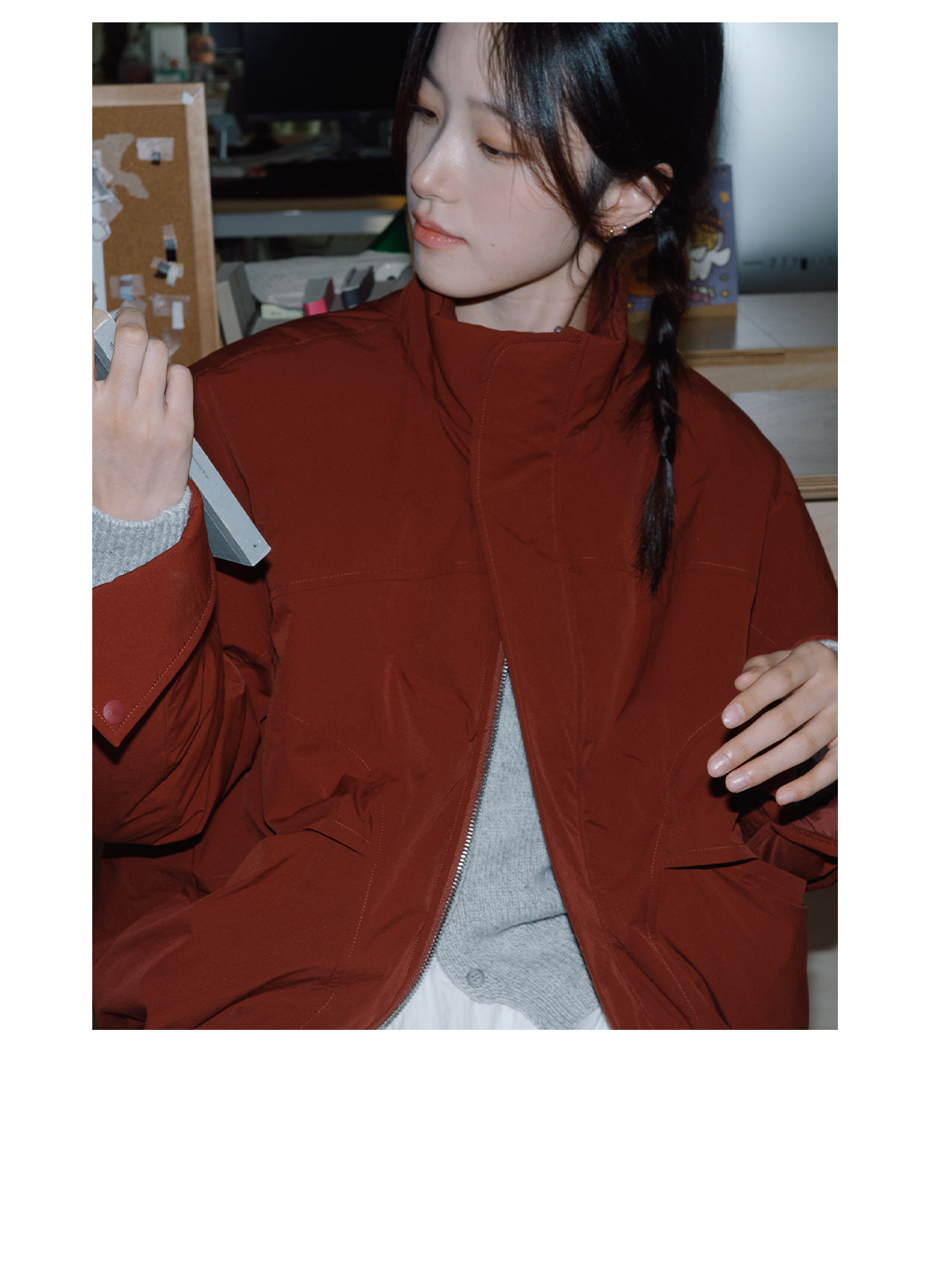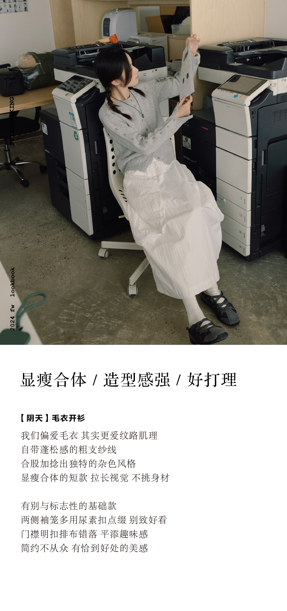 步履不停/4D13237C/基础款圆领灰色棕色羊毛短款针织开衫毛衣