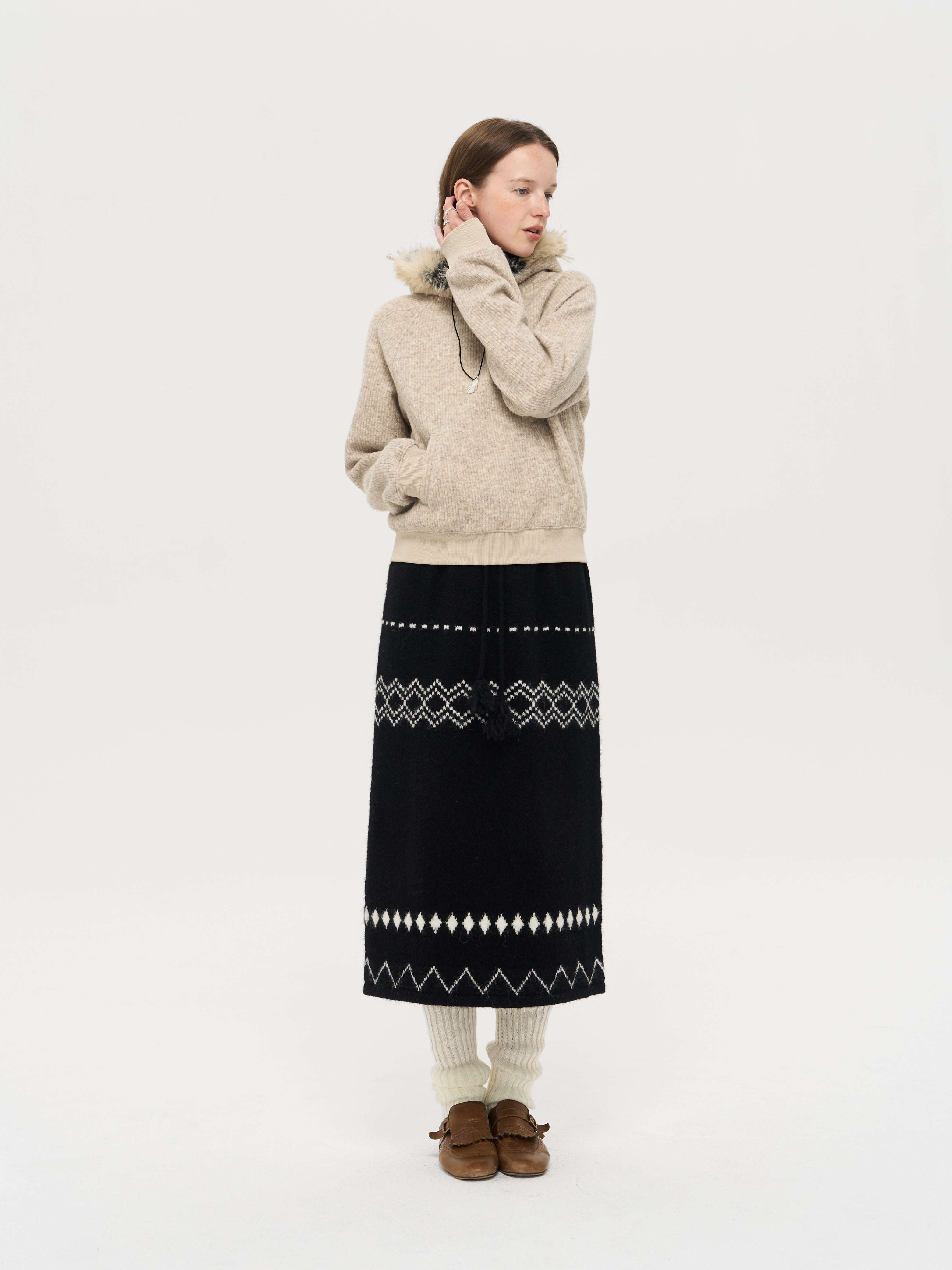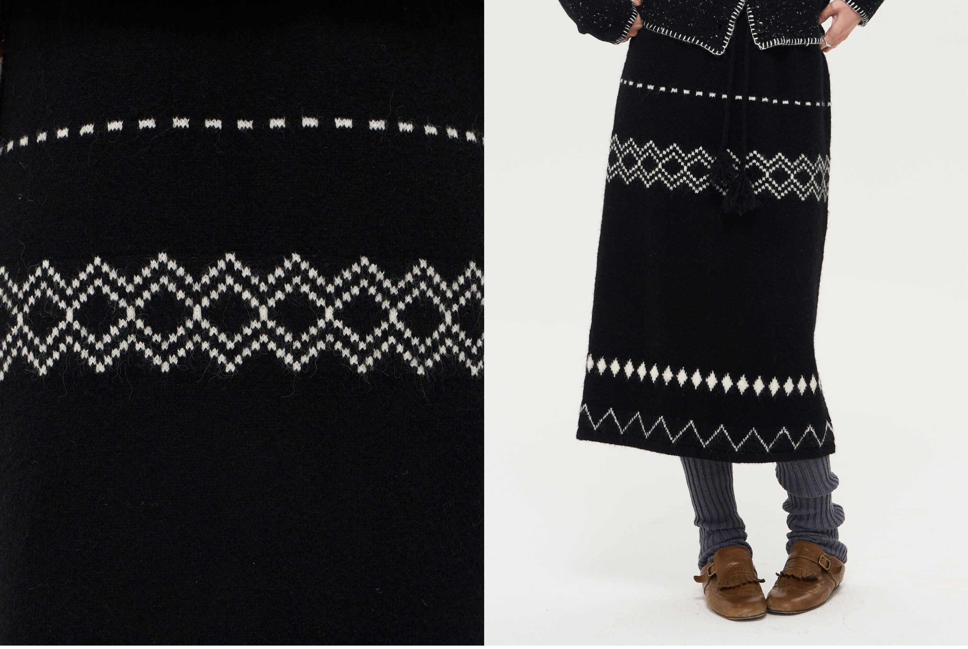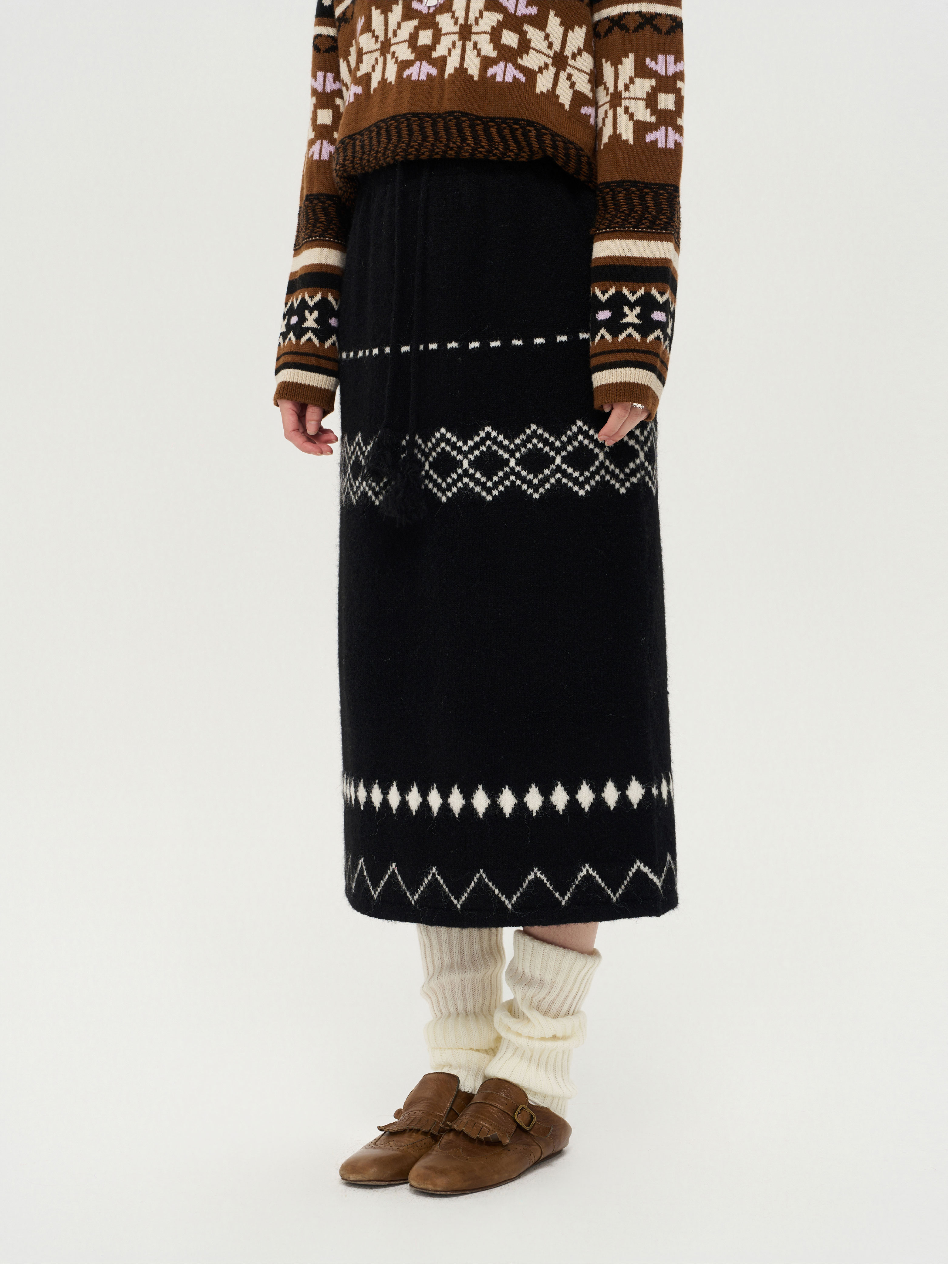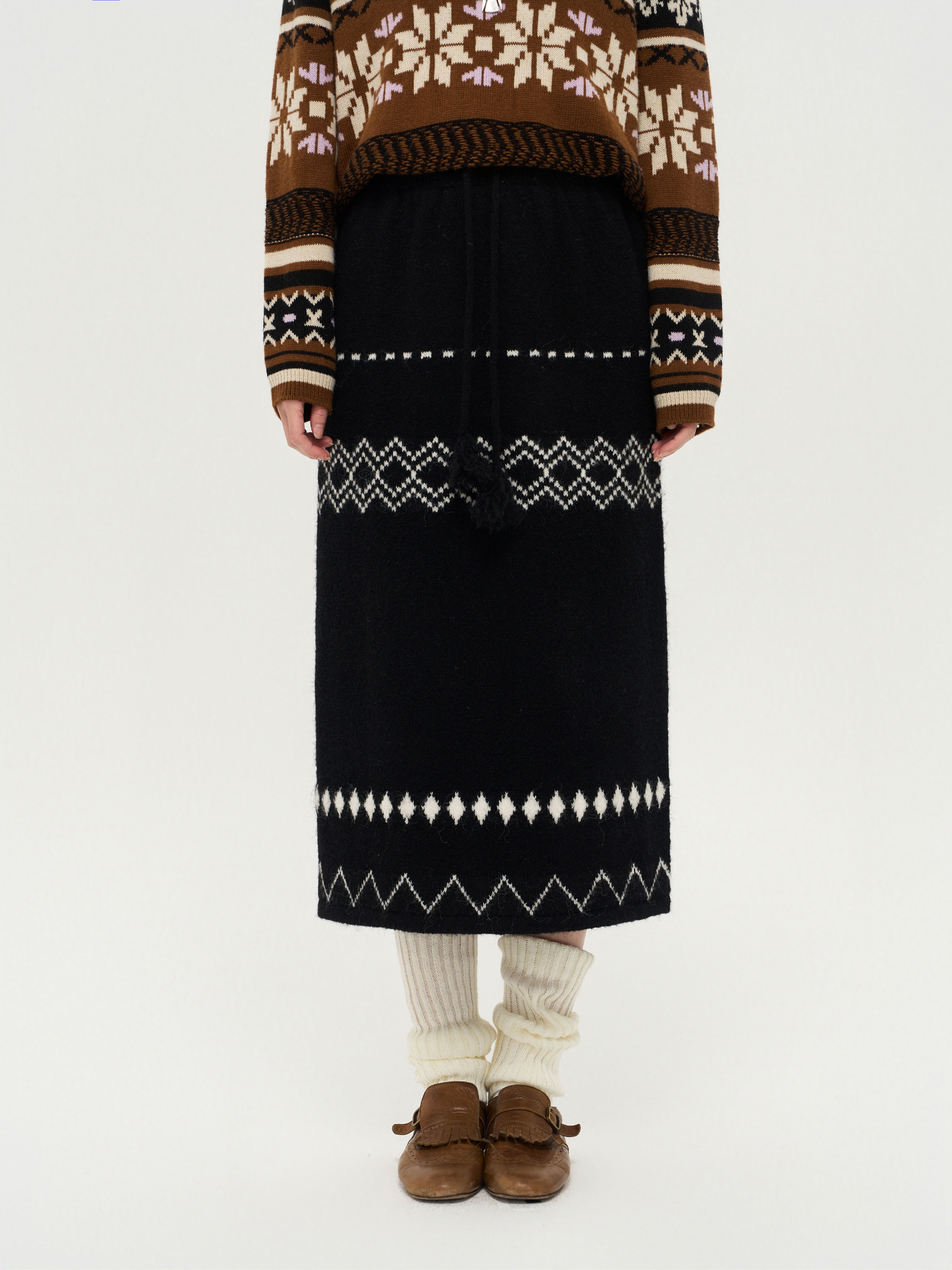local tag/lt25awk51/流苏香草荚 毛线系带提花含羊毛针织半裙