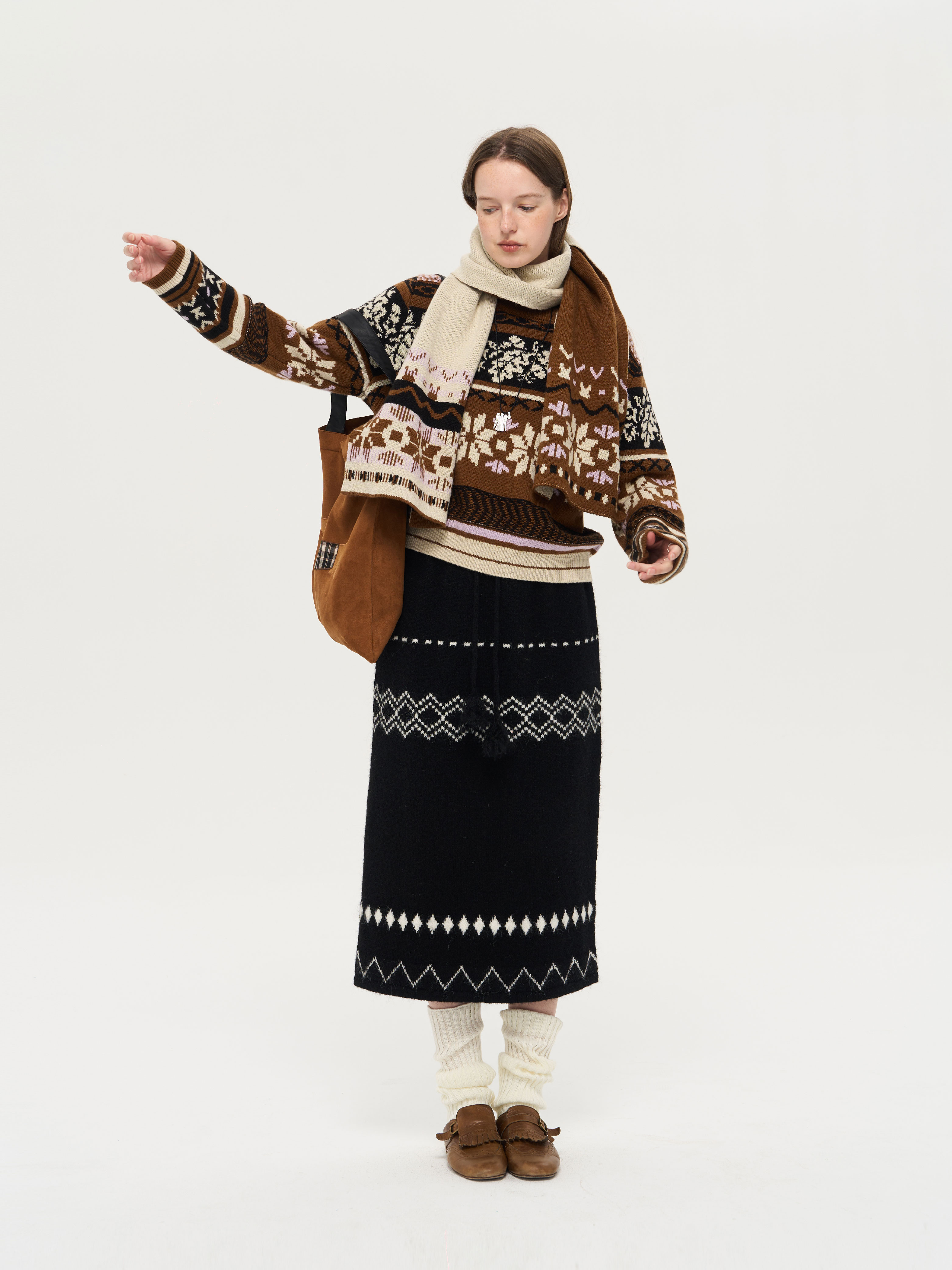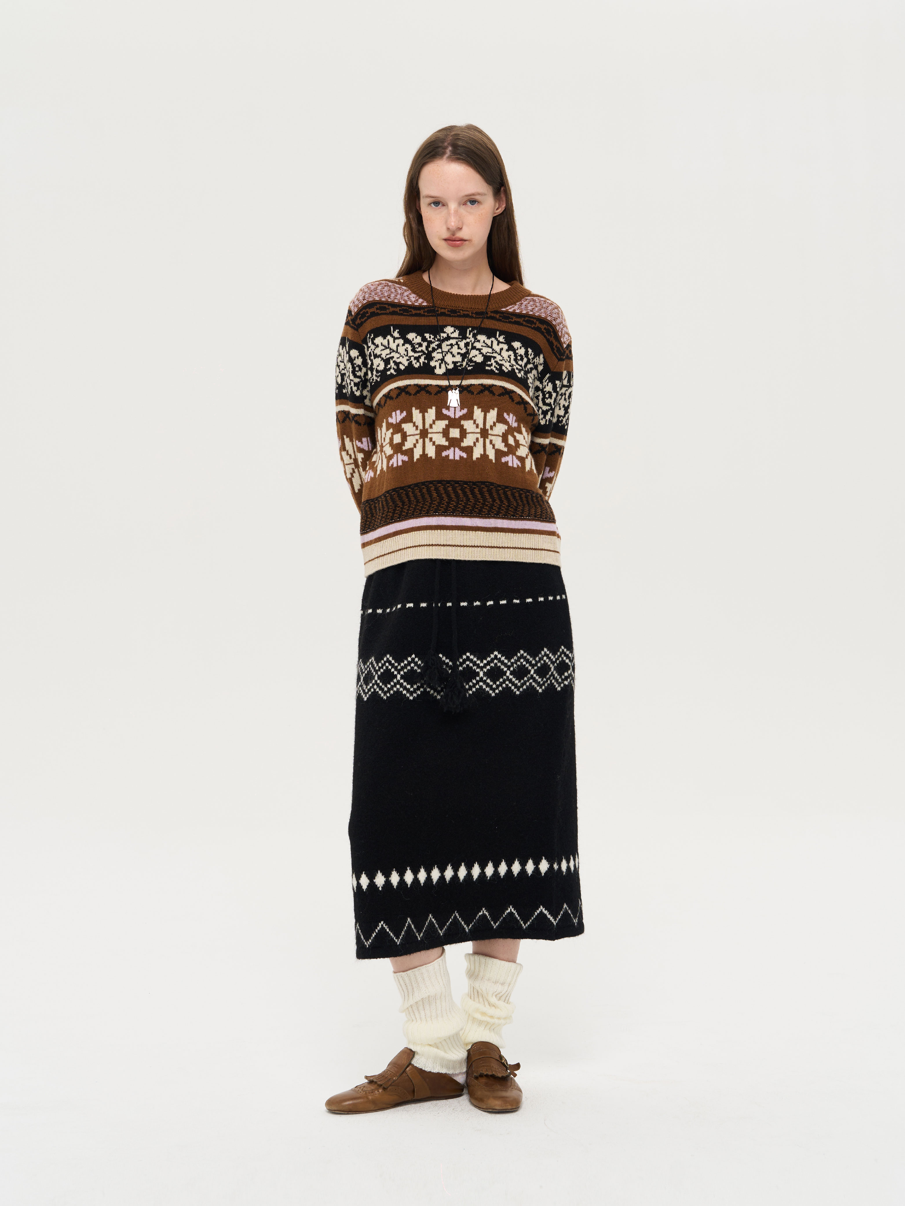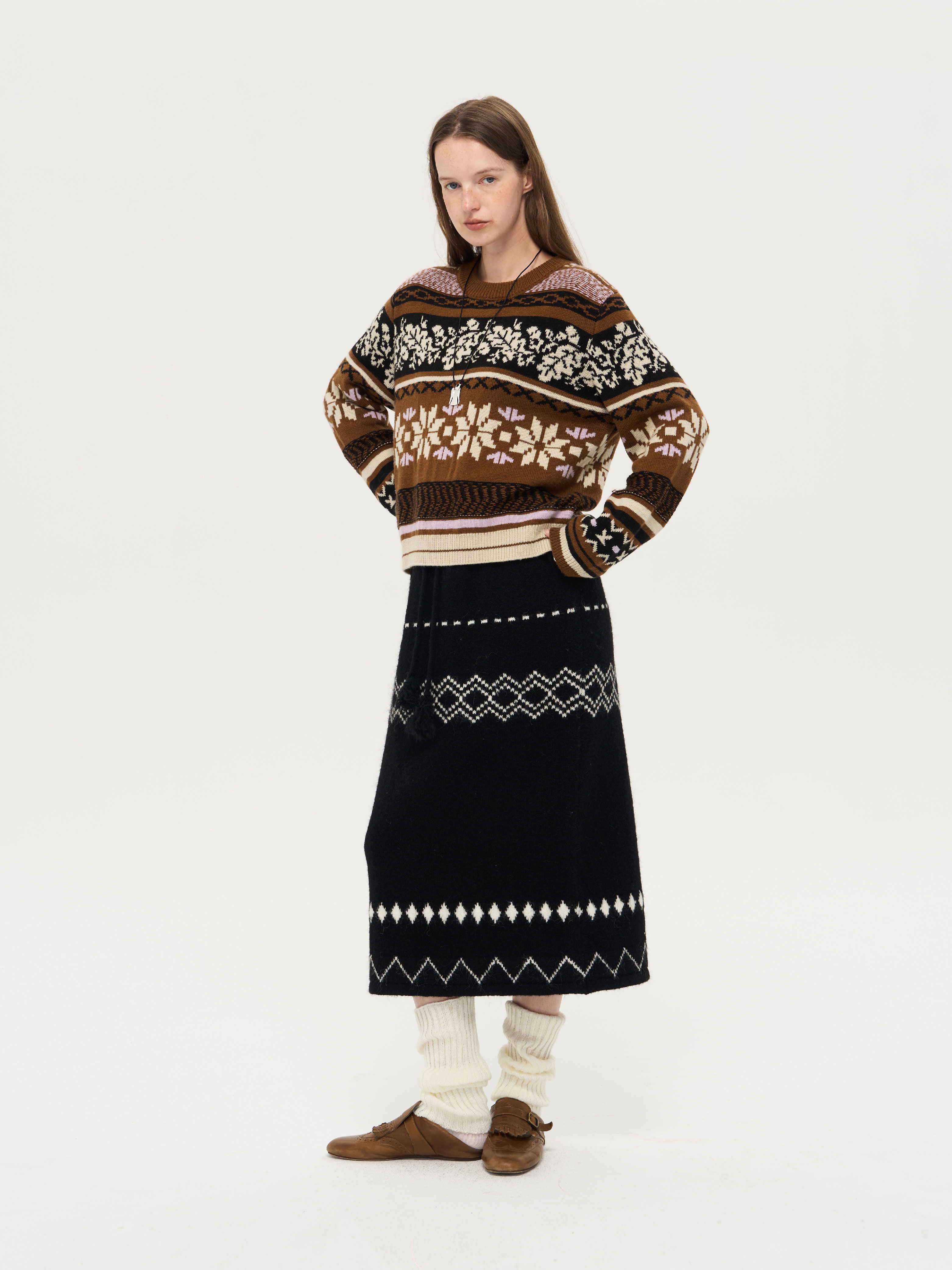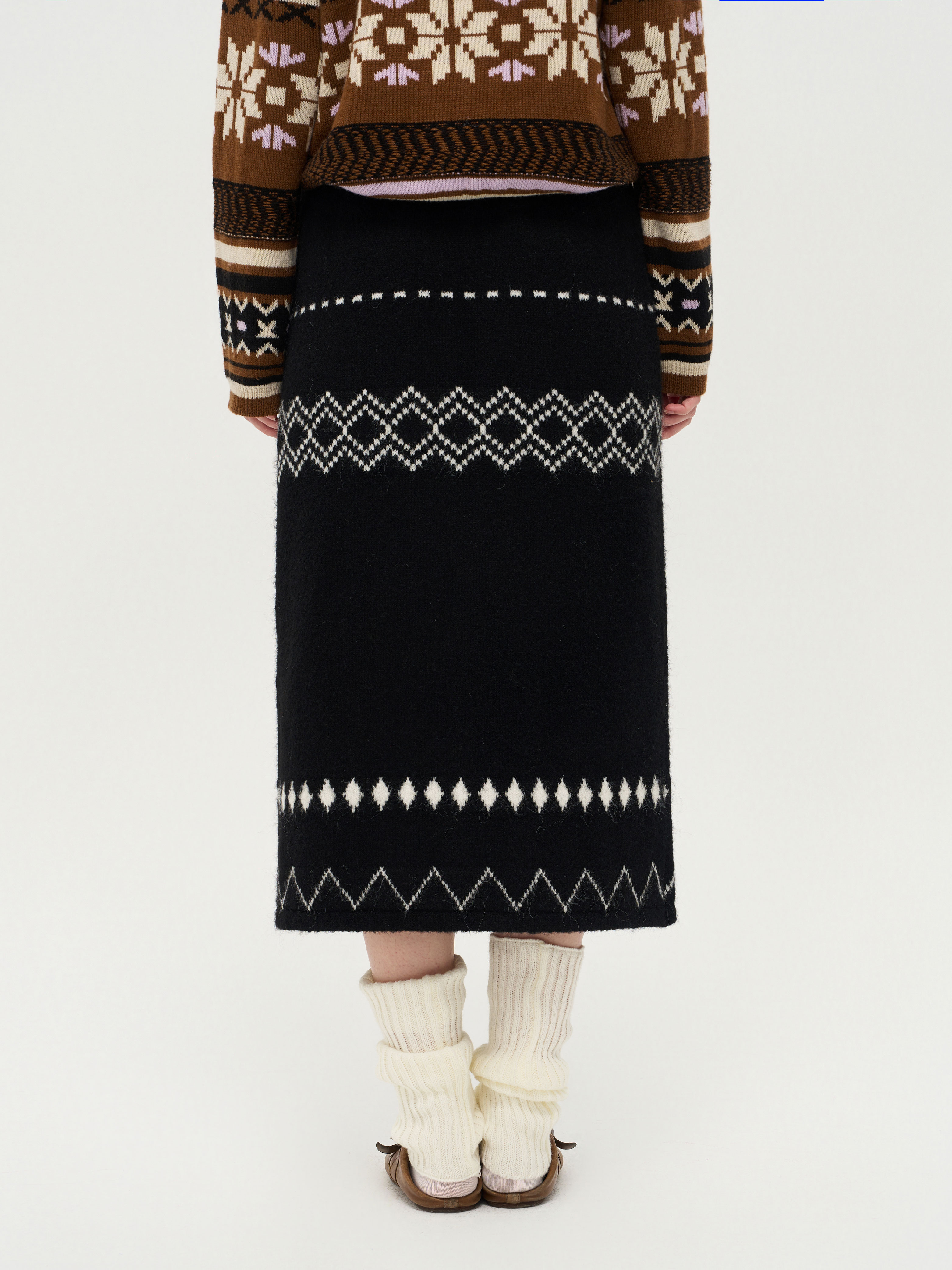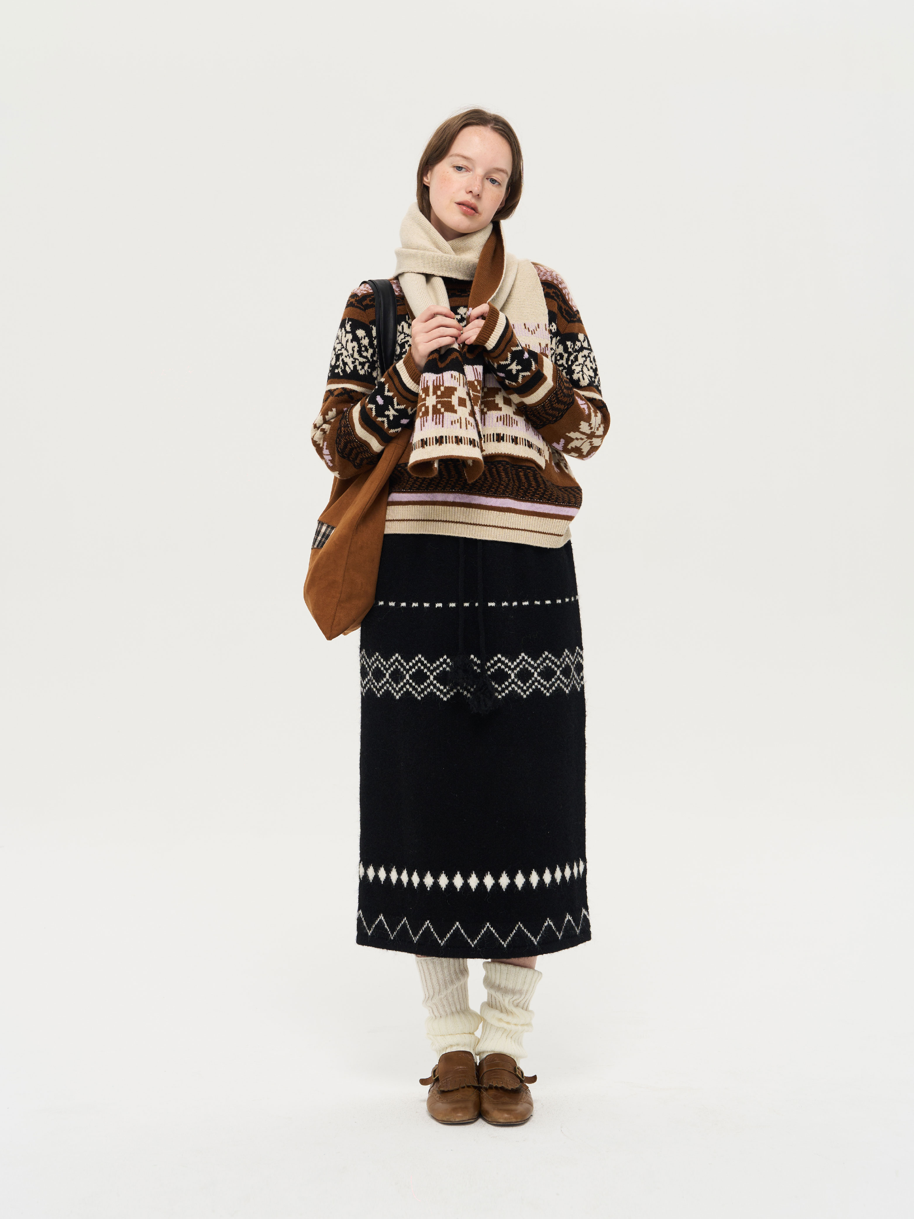 local tag/lt25awk51/流苏香草荚 毛线系带提花含羊毛针织半裙