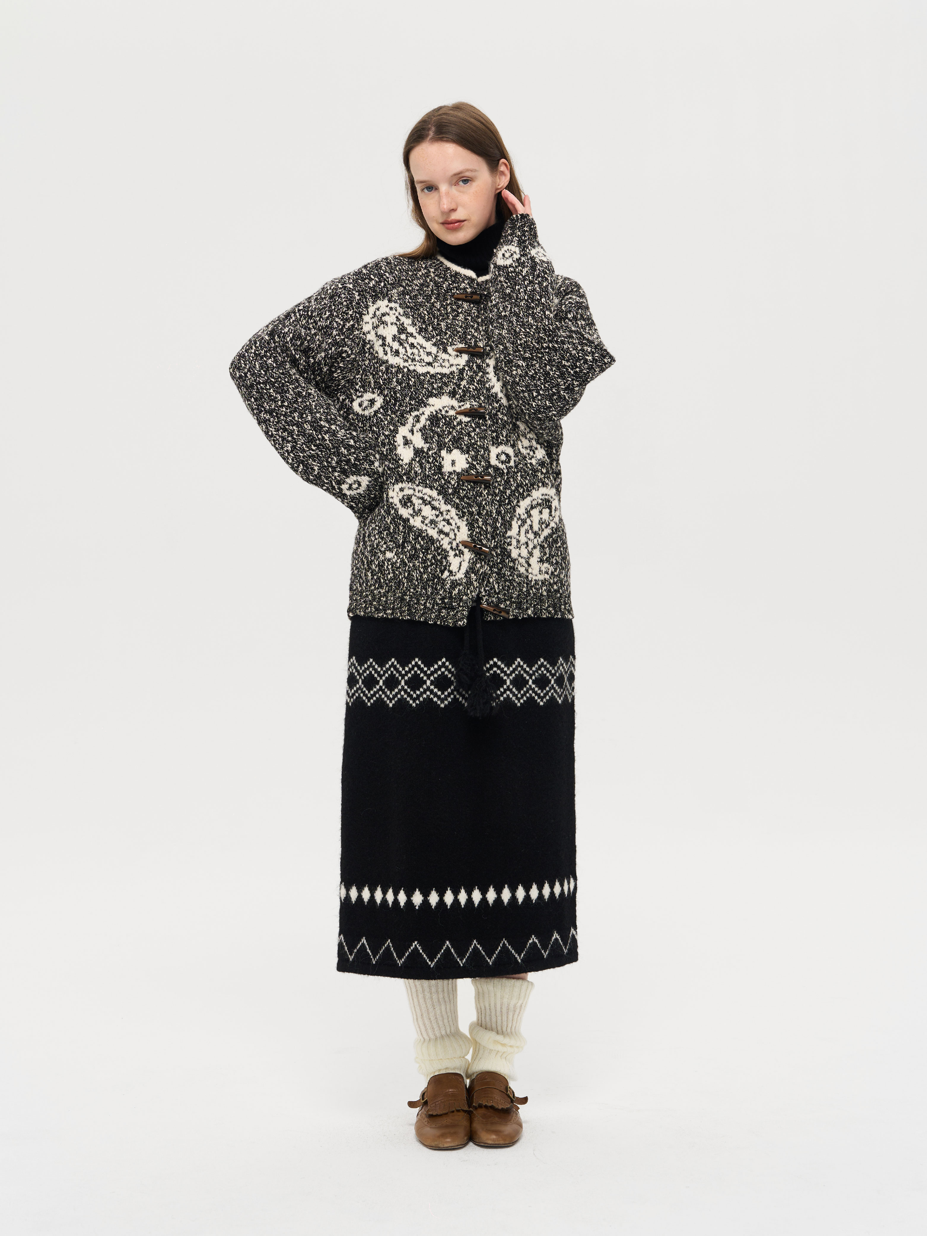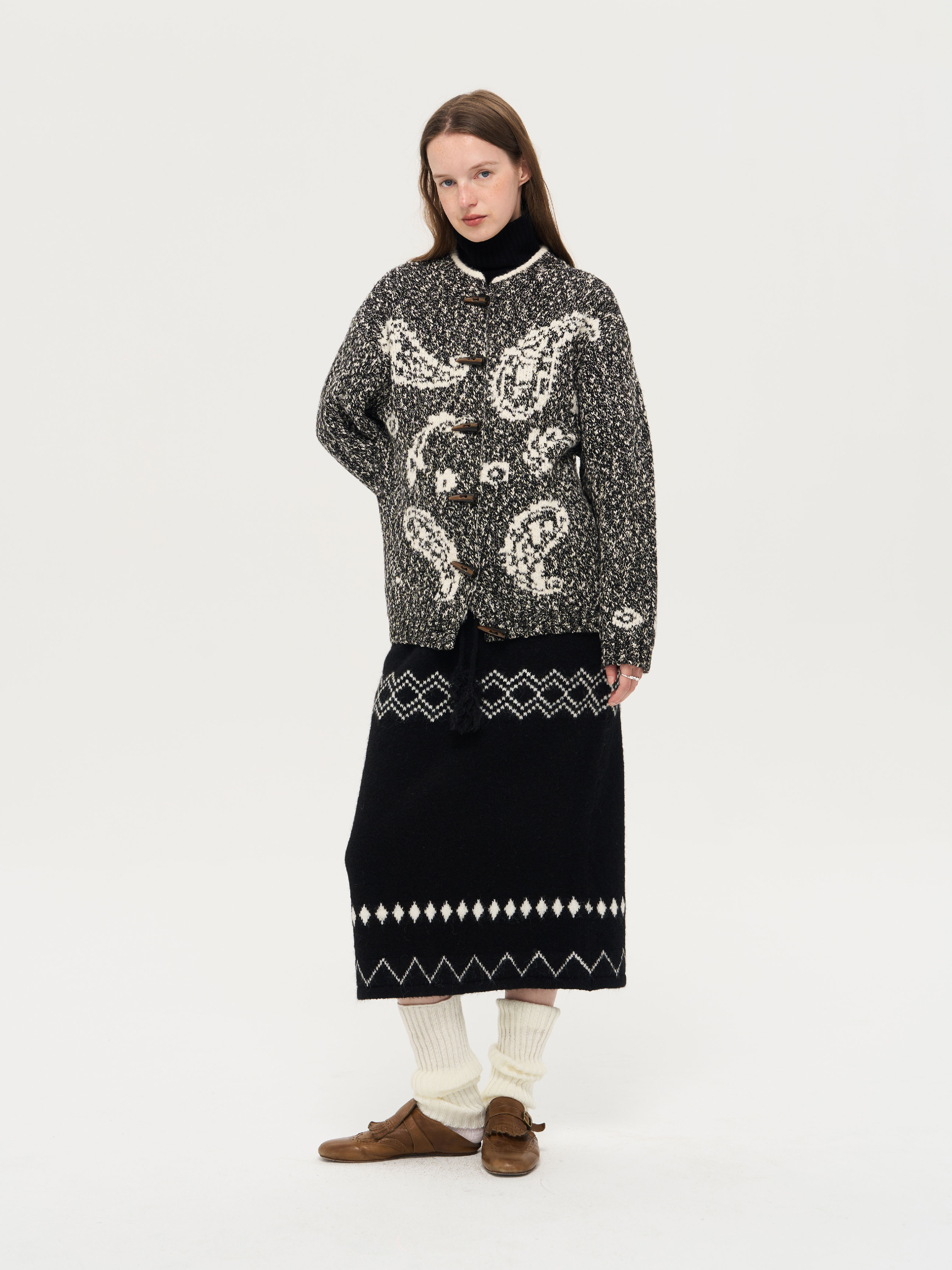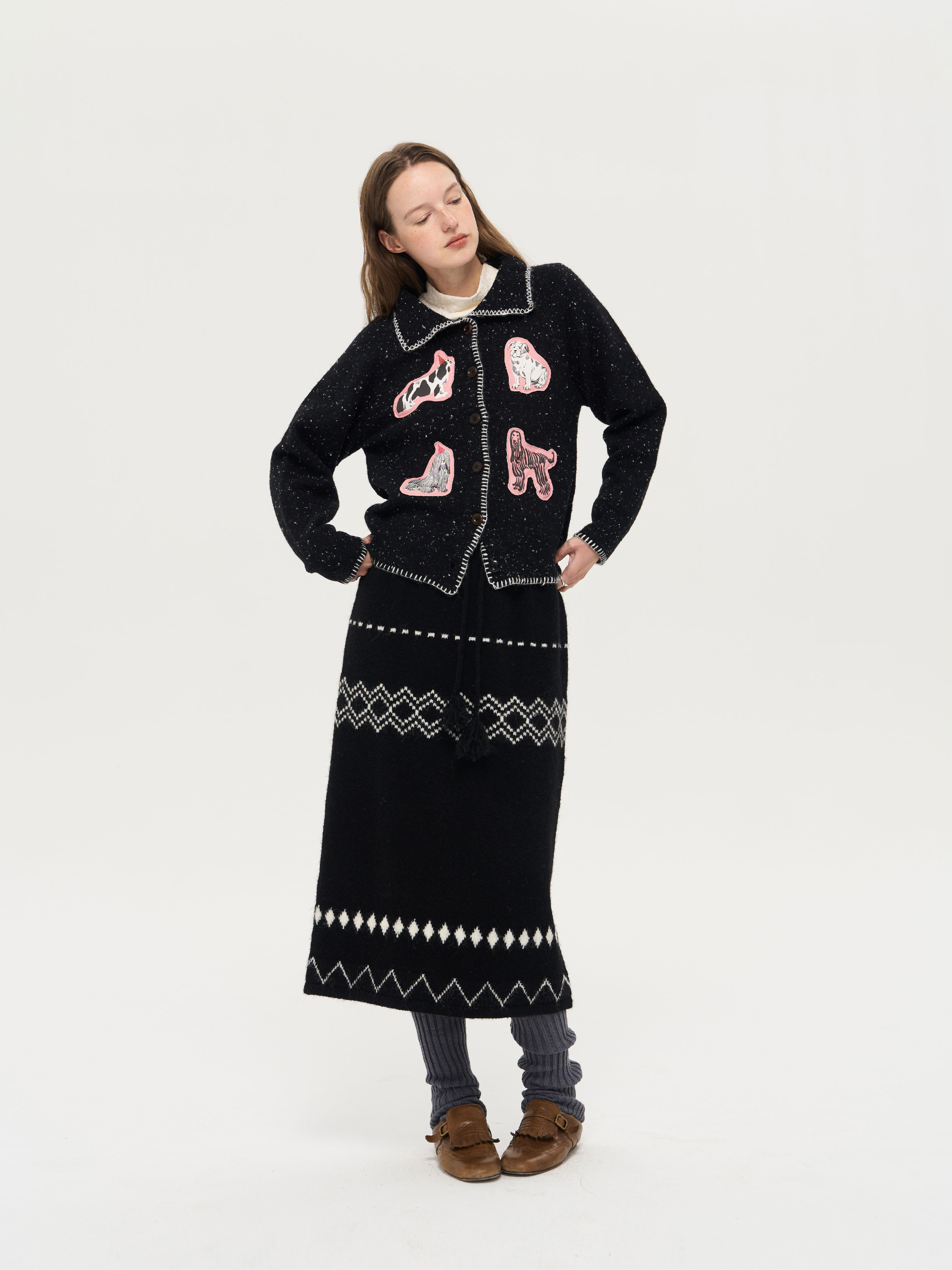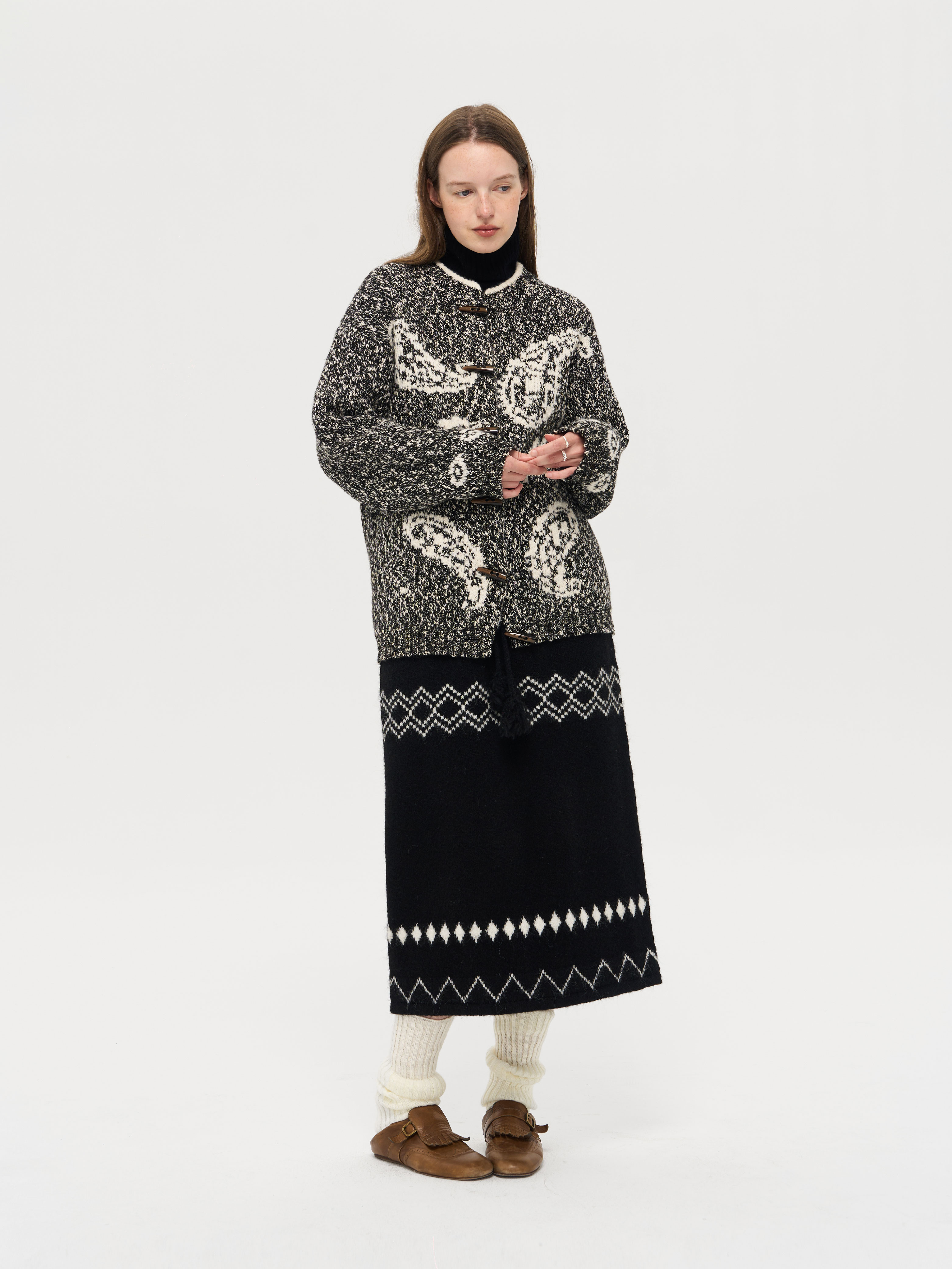 local tag/lt25awk51/流苏香草荚 毛线系带提花含羊毛针织半裙