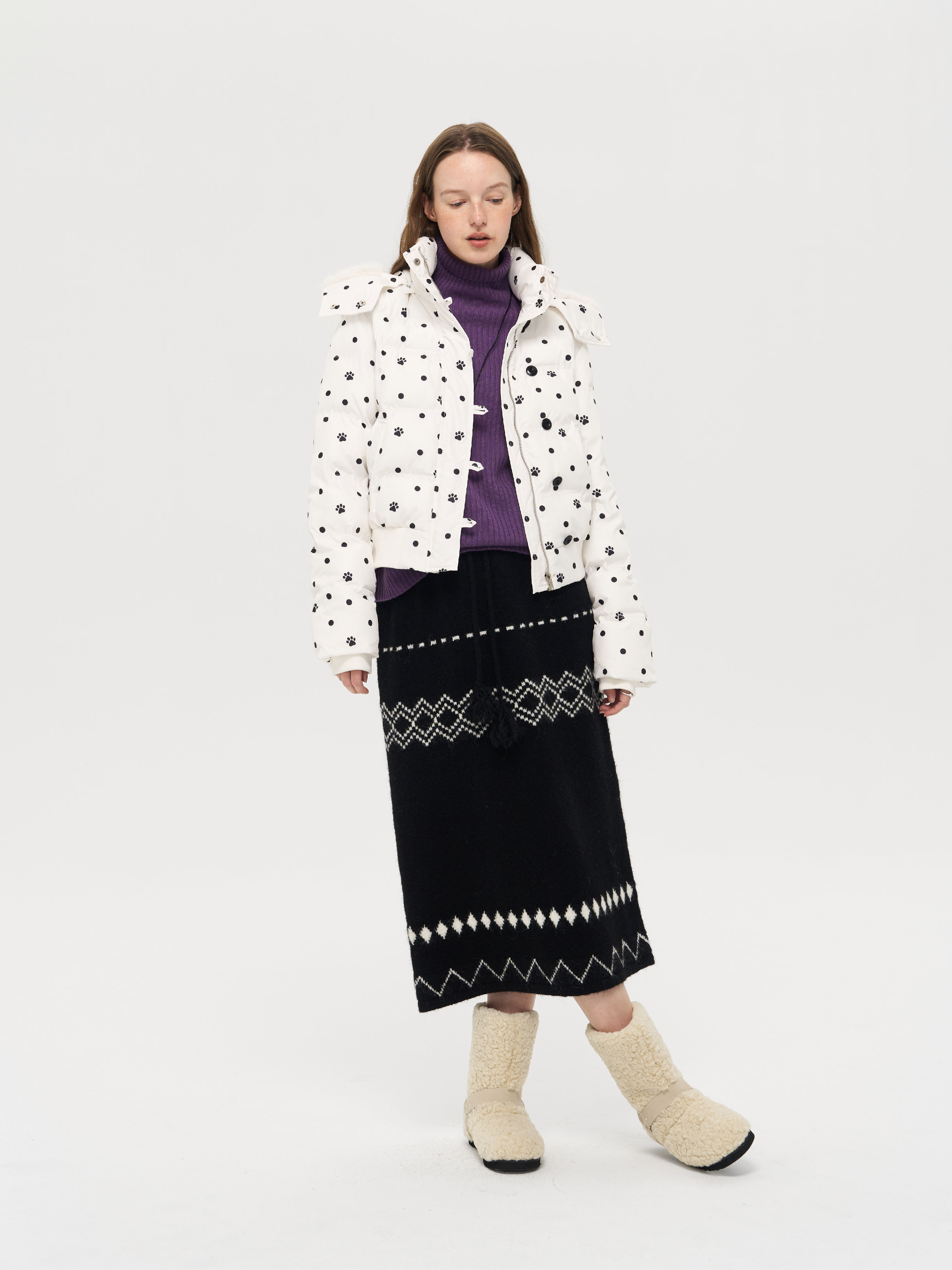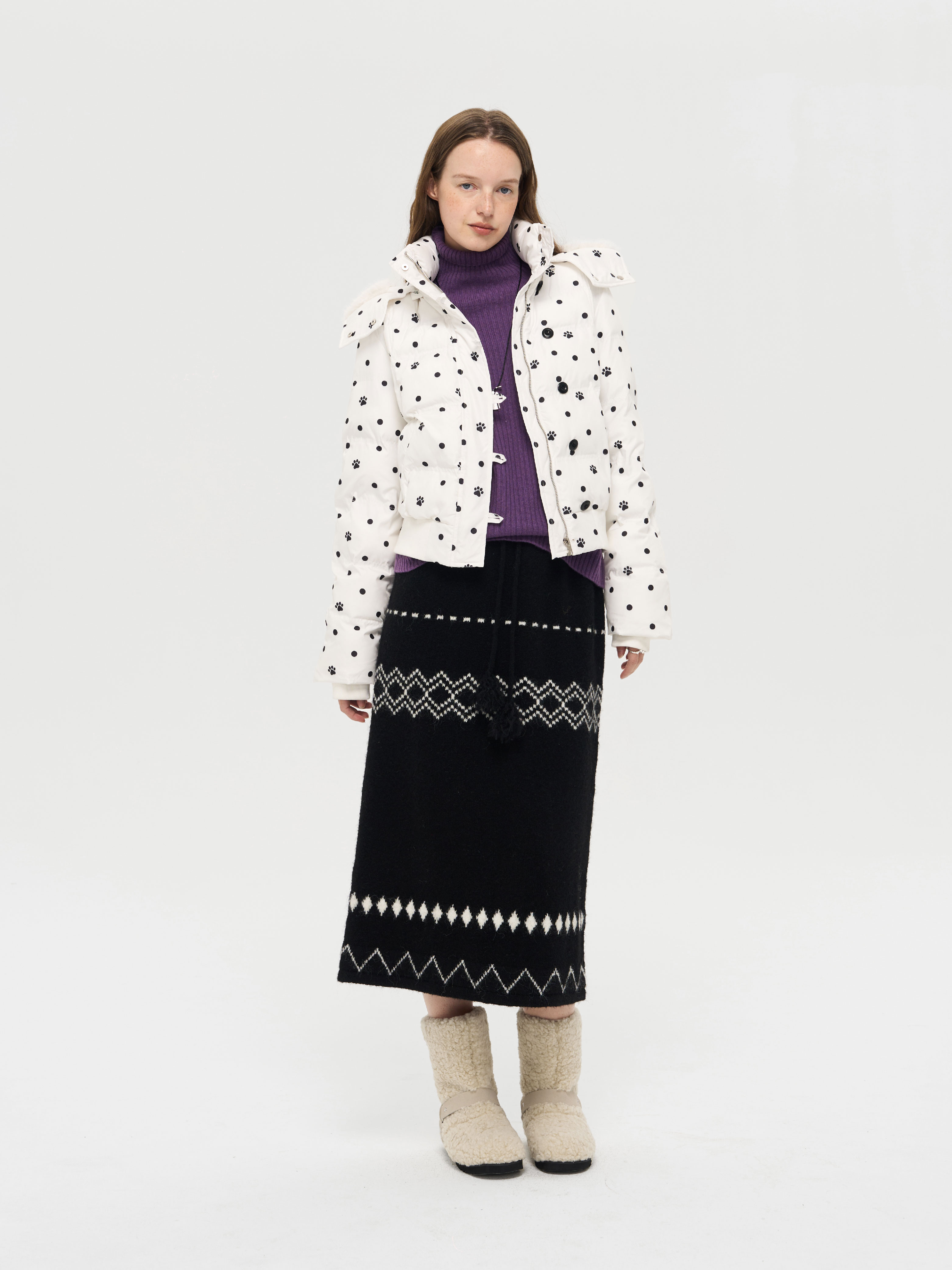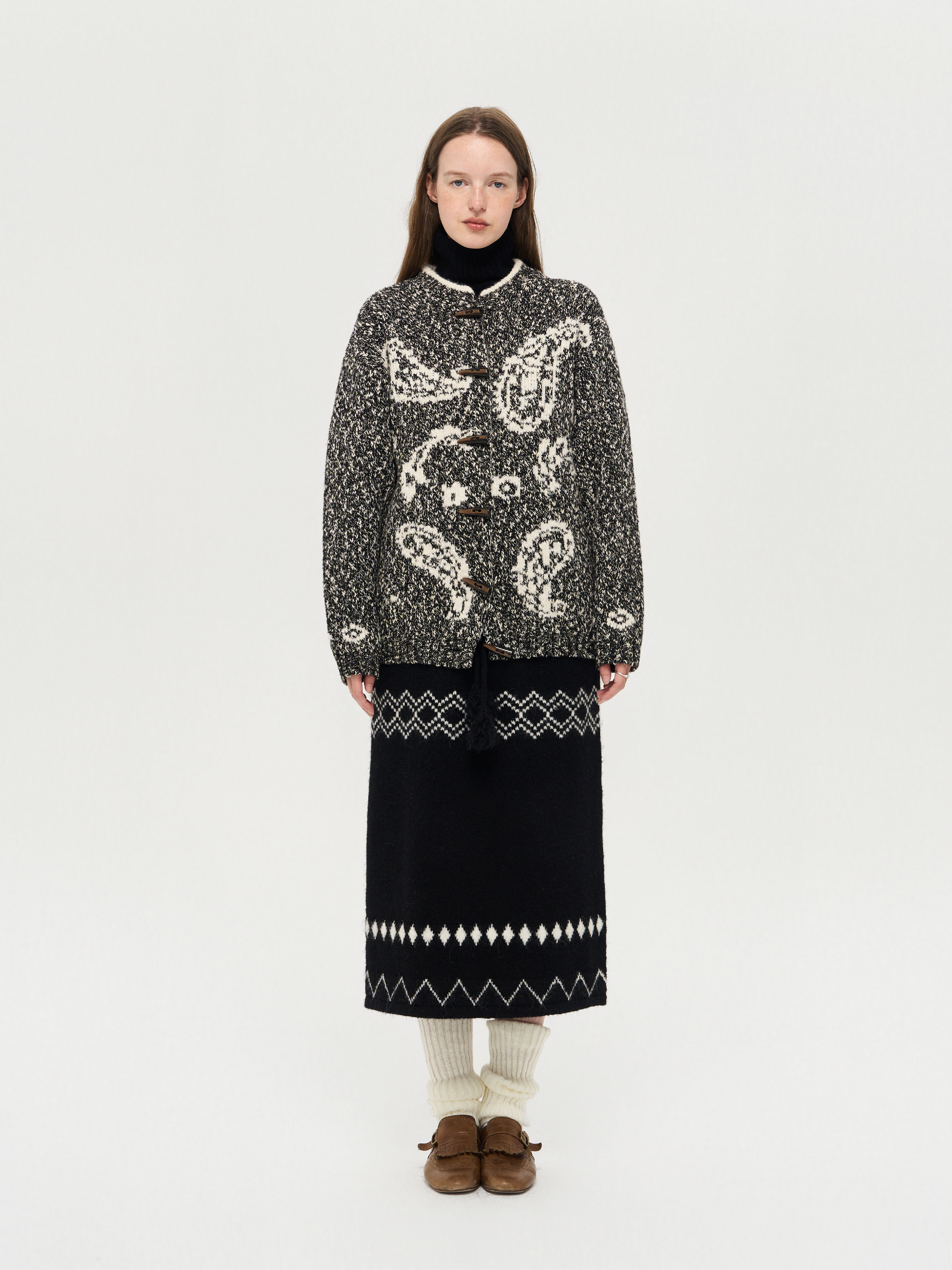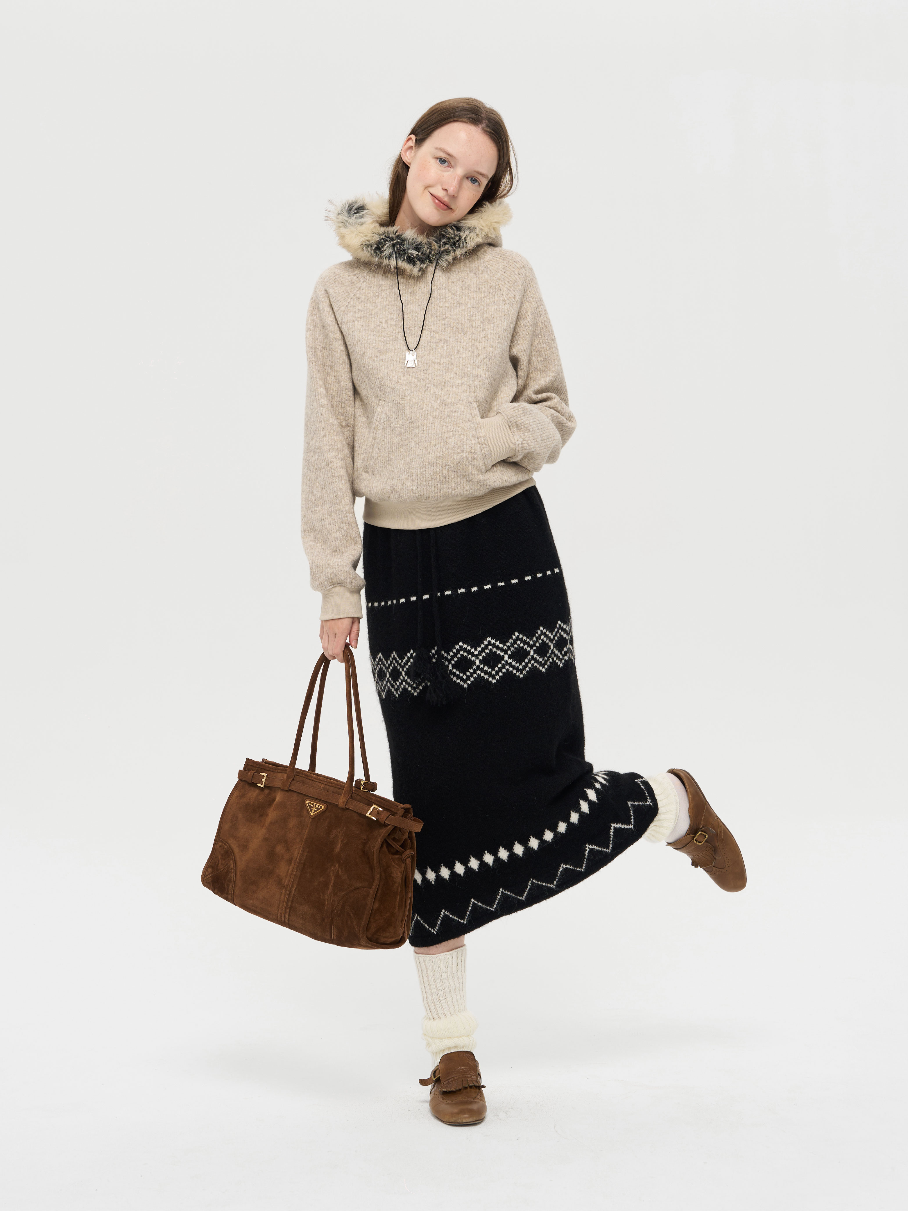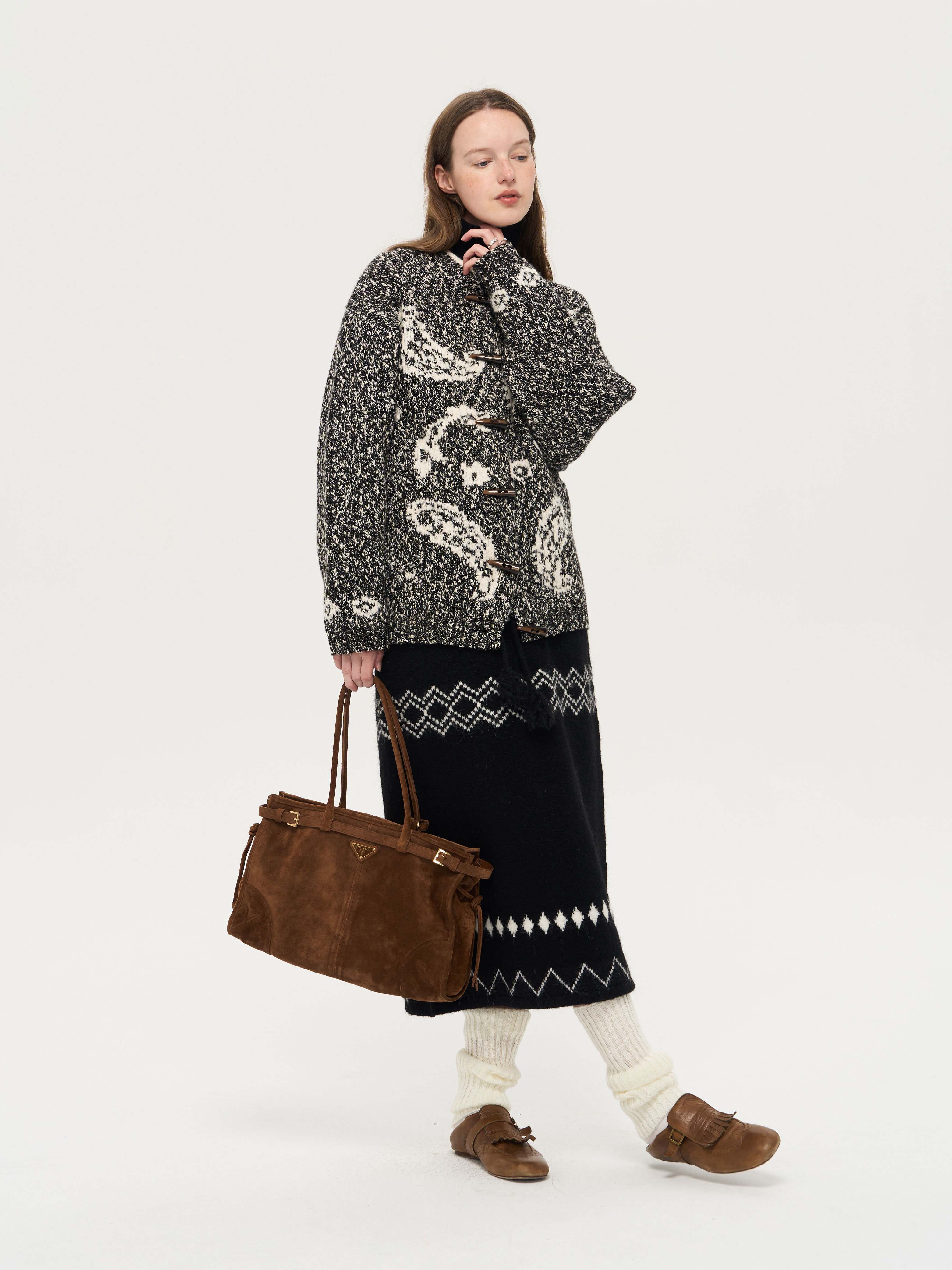 local tag/lt25awk51/流苏香草荚 毛线系带提花含羊毛针织半裙
