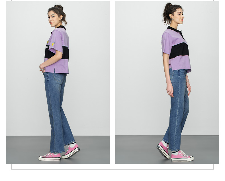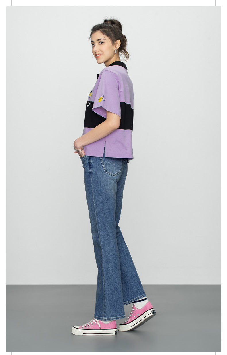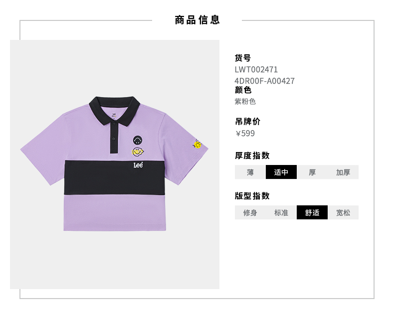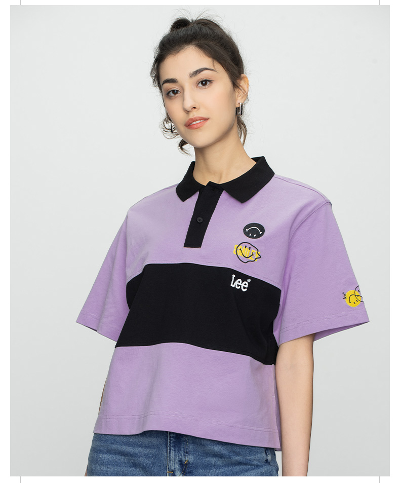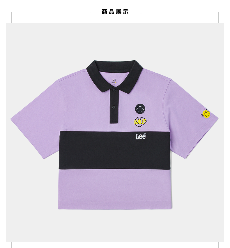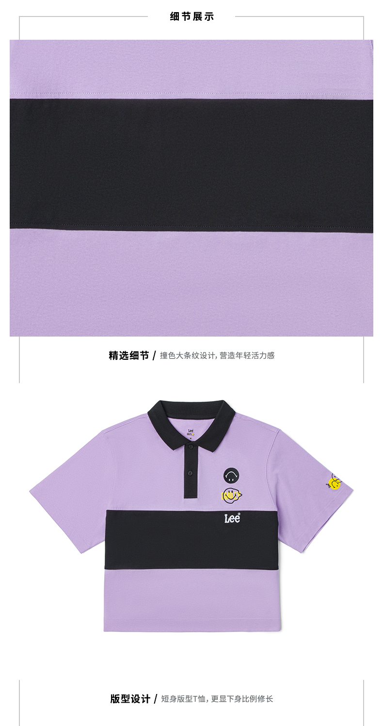 【Smiley®联名】Lee22春夏新品舒适紫粉女短袖翻领T恤LWT002471