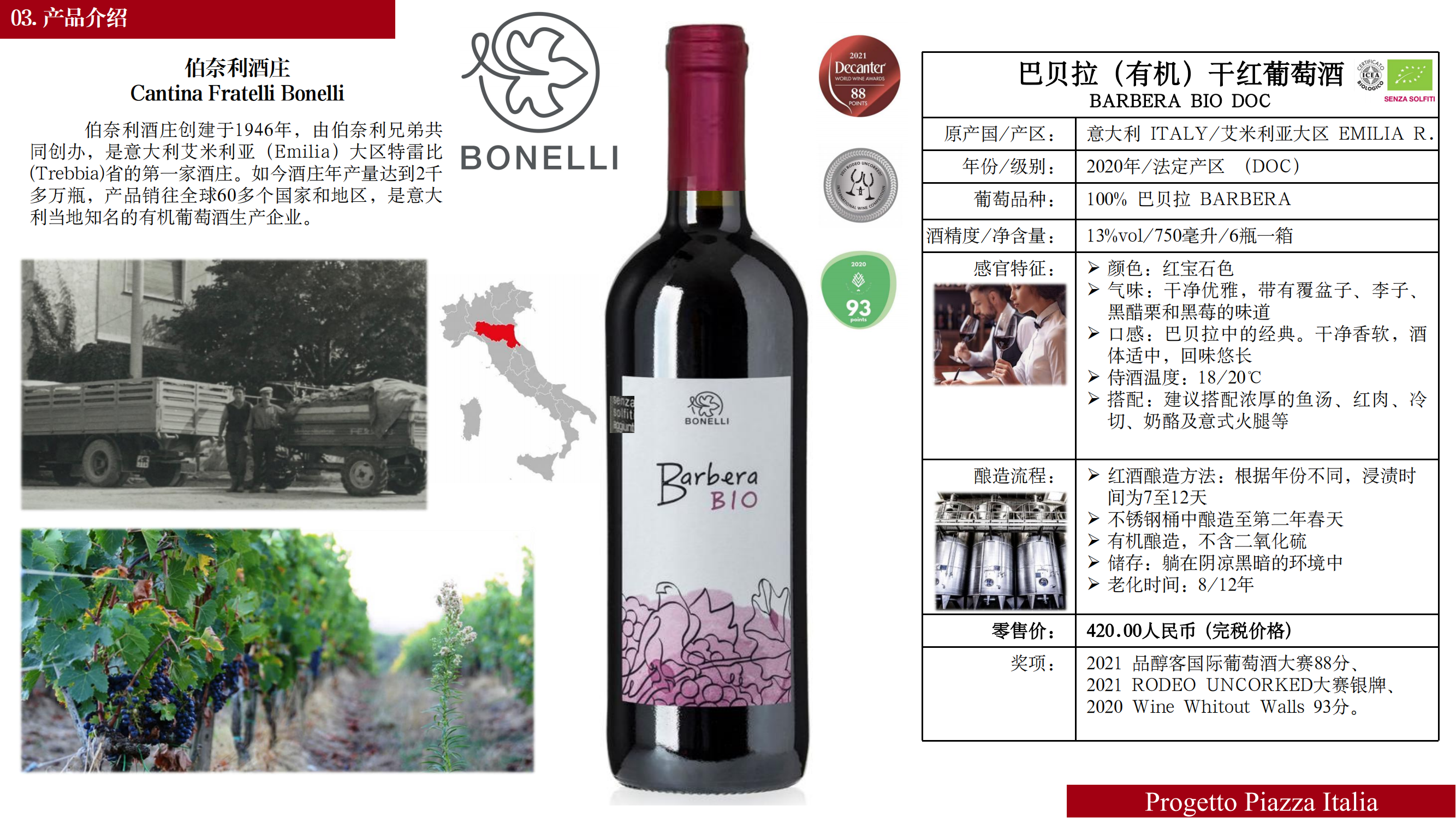 意大利-巴贝拉(有机)干红葡萄酒2020年
