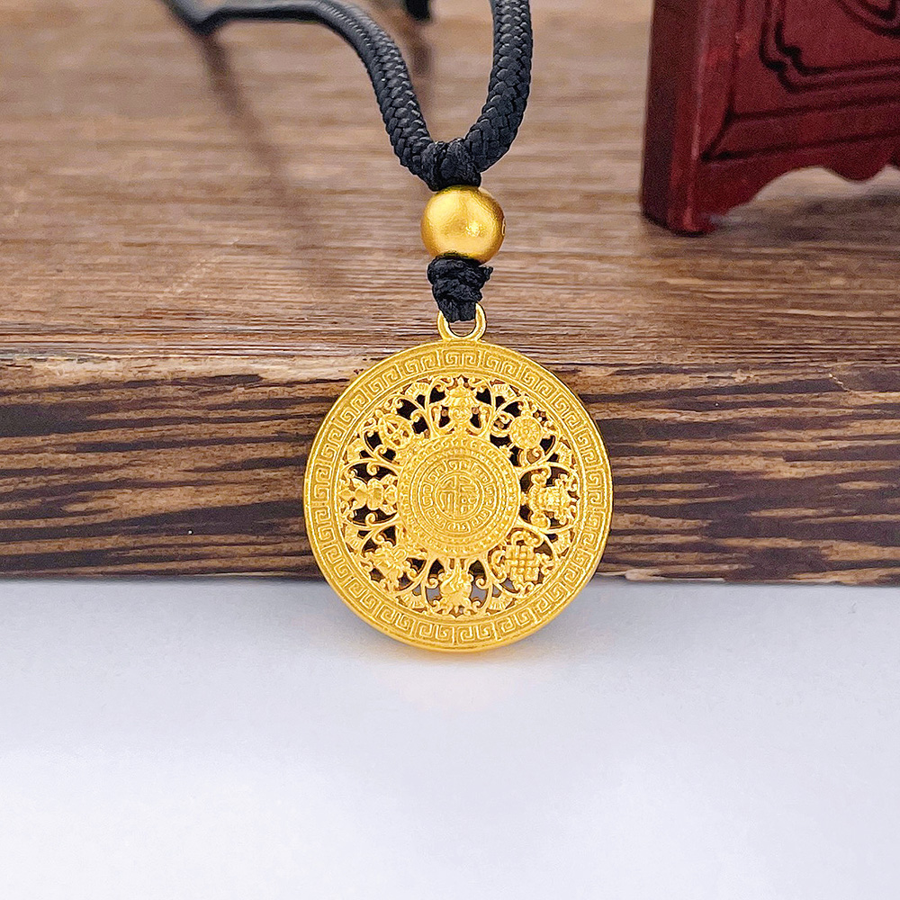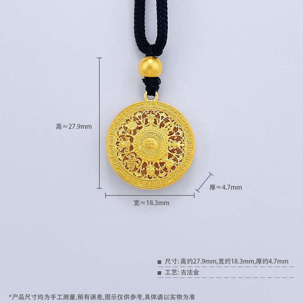足金999.9 #八宝罗盘 #小红书 古法挂绳空心镂空八宝罗盘吊坠(面宽约18.3mm,含珠子)(ANWZGFDZ00200-5)预售产品下单后不退款不退货不换货不补差价