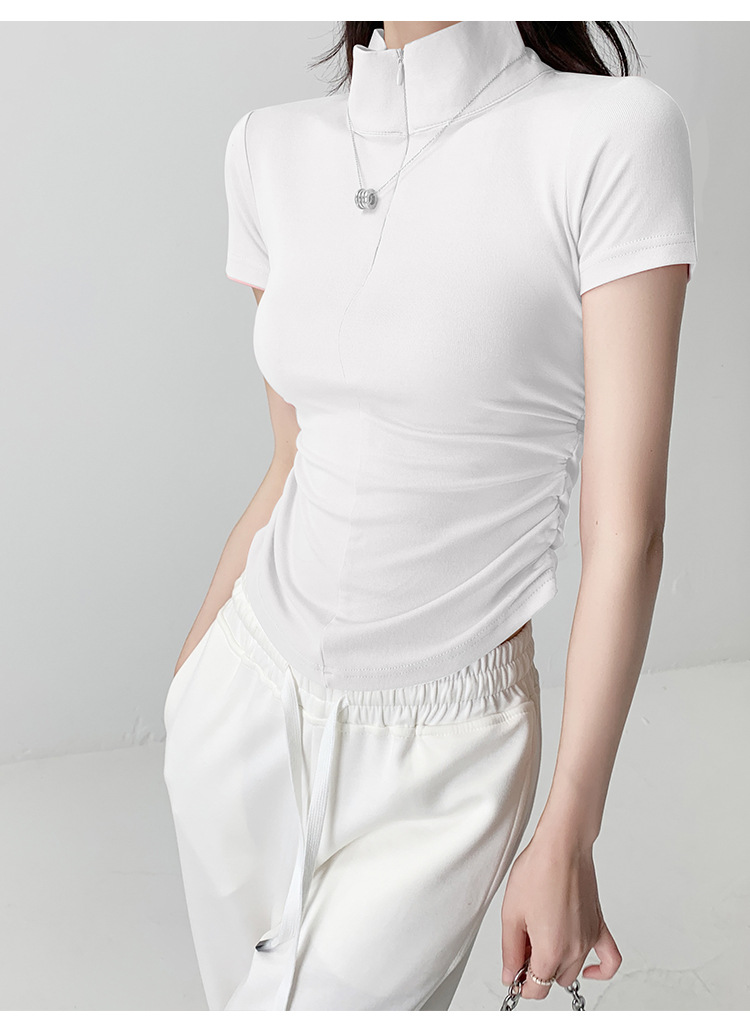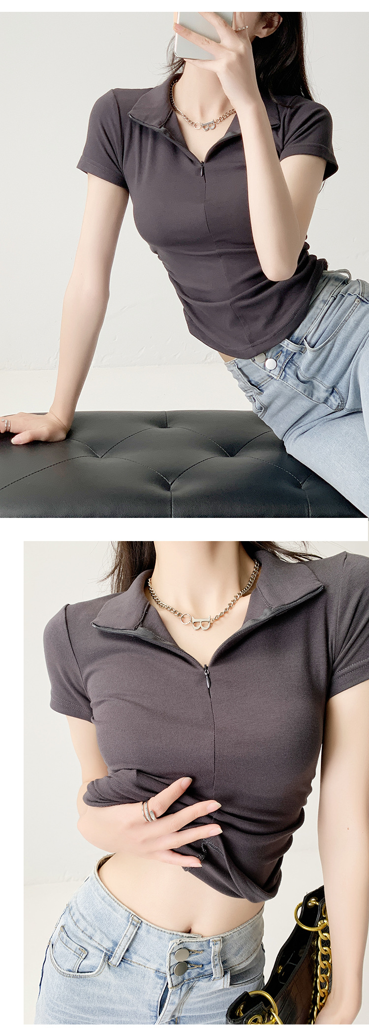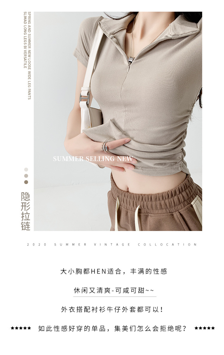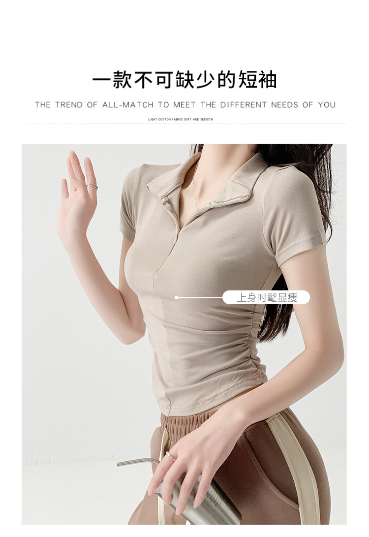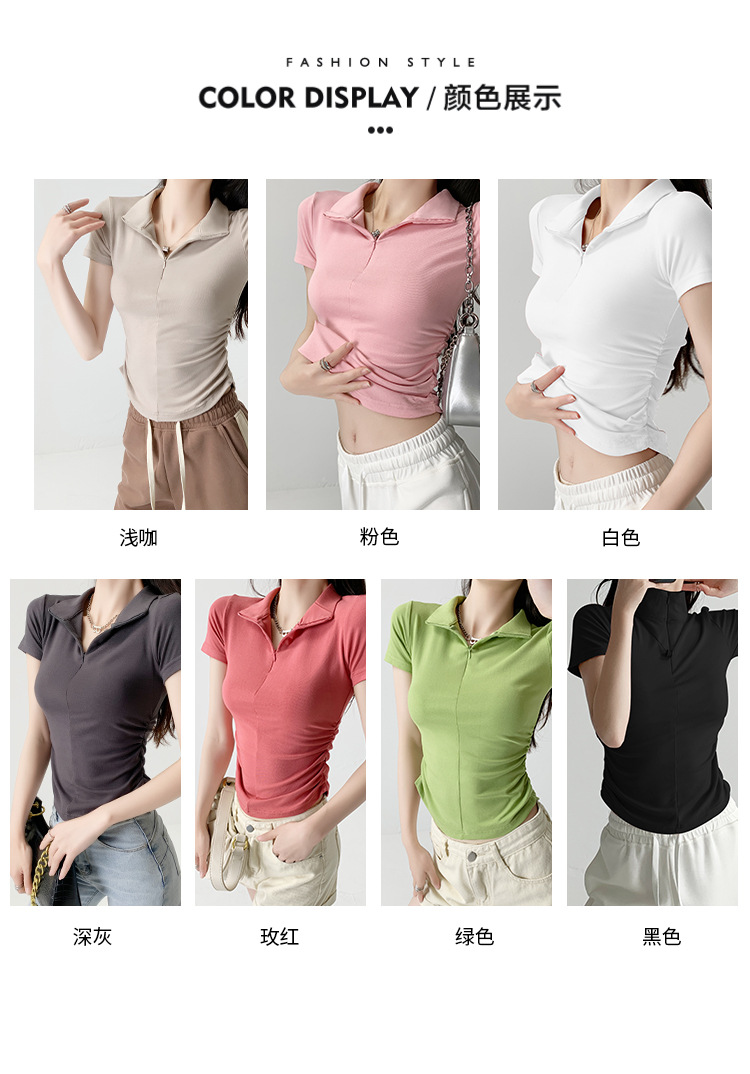 【多巴胺穿搭纯欲拉链短袖t恤】夏季新款修身外穿辣妹收腰半袖上衣大小胸都HEN适合,丰满的性感 休闲又清爽-可咸可甜~~