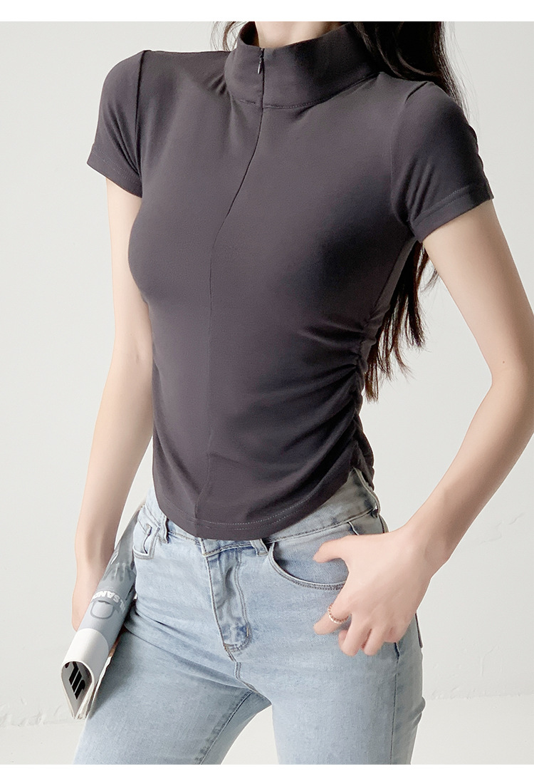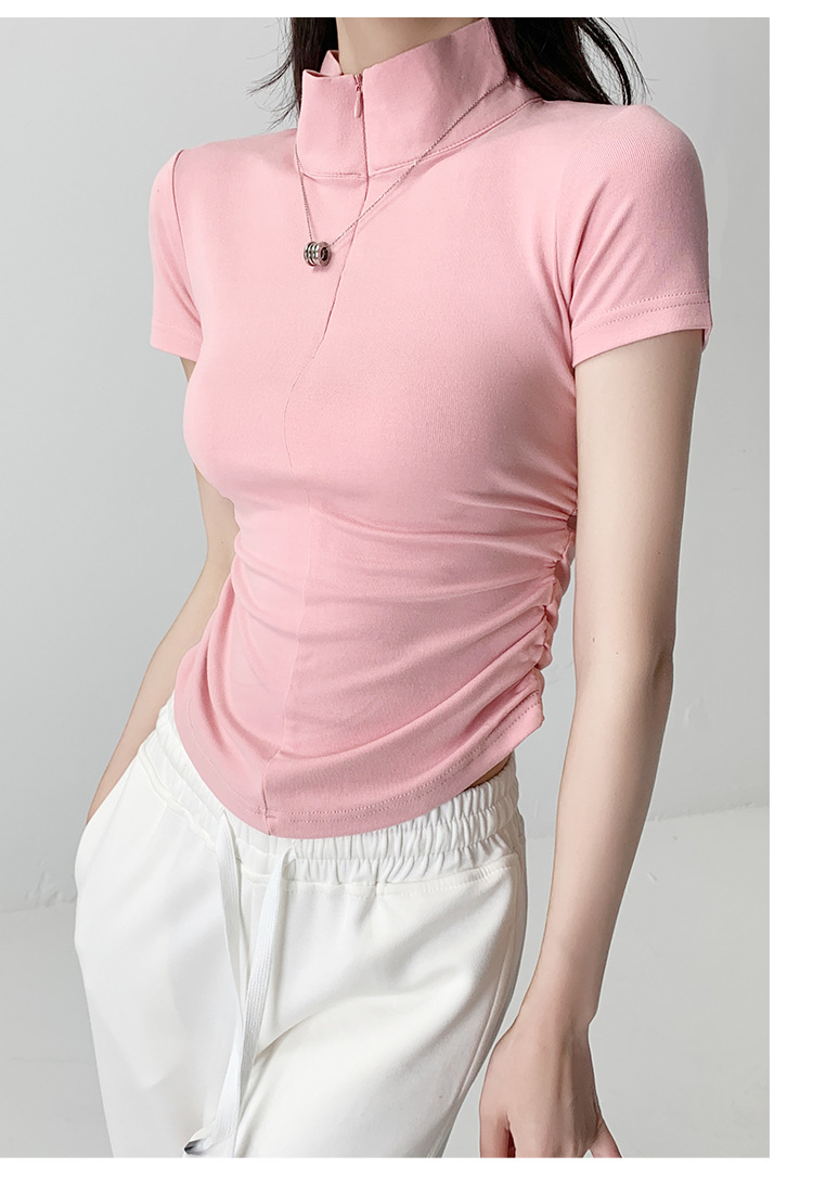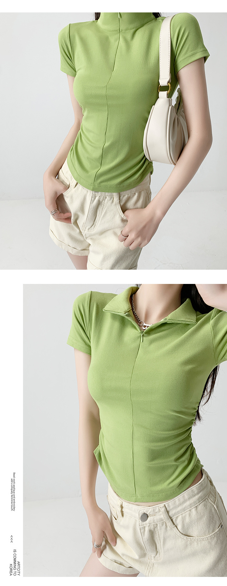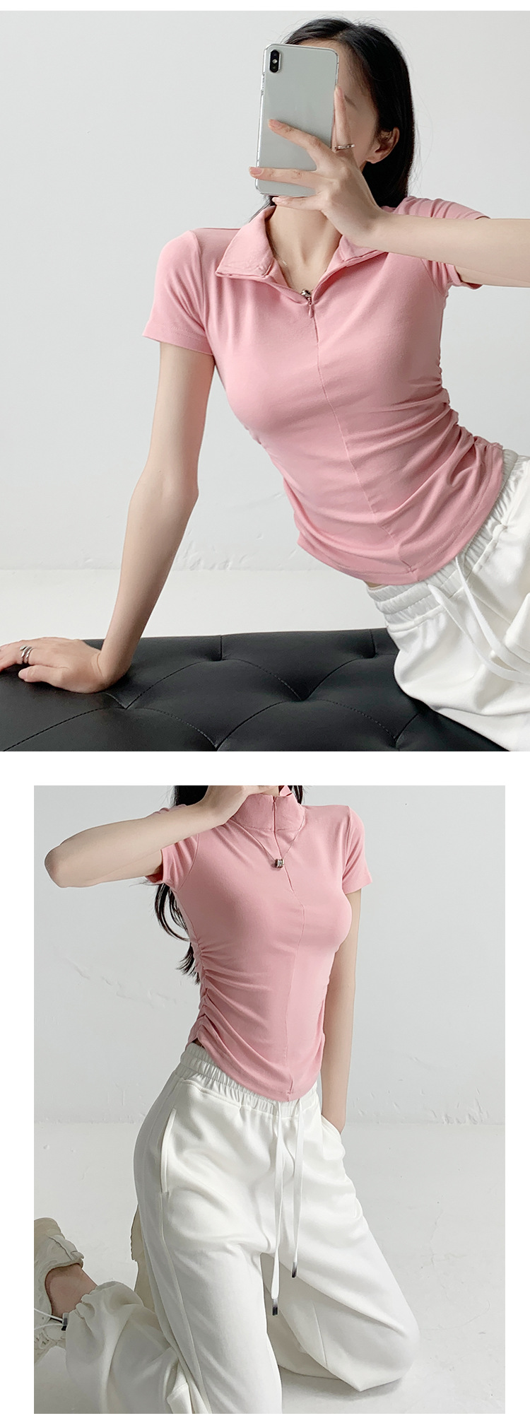 【多巴胺穿搭纯欲拉链短袖t恤】夏季新款修身外穿辣妹收腰半袖上衣大小胸都HEN适合,丰满的性感 休闲又清爽-可咸可甜~~