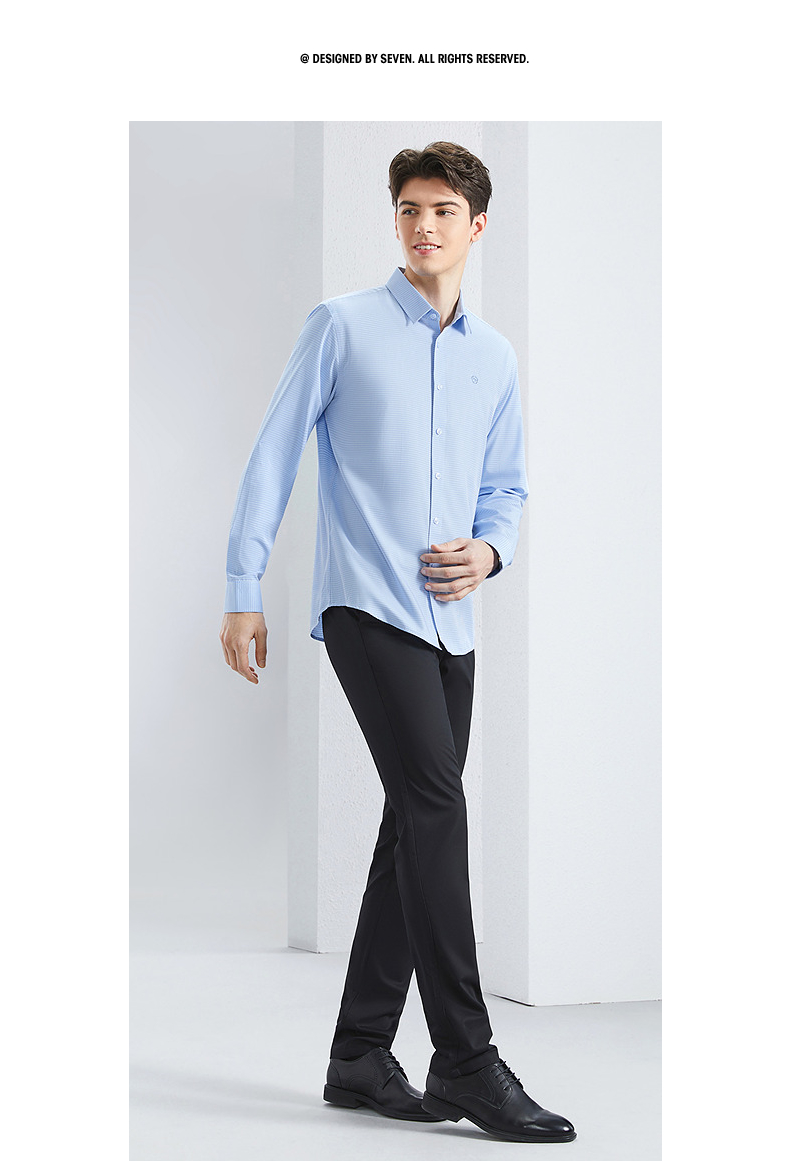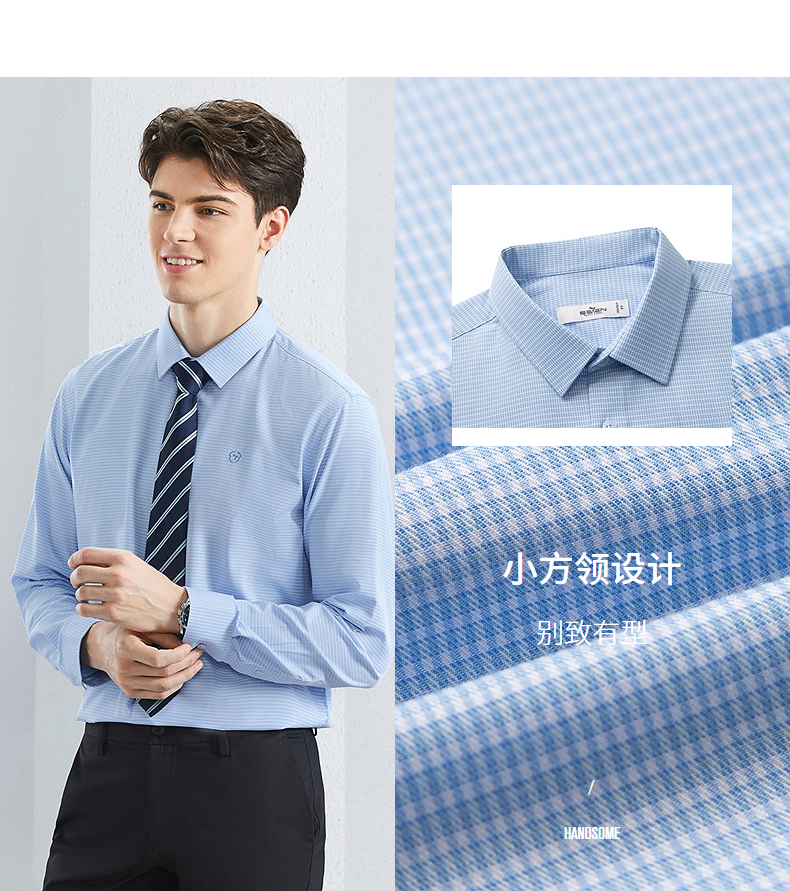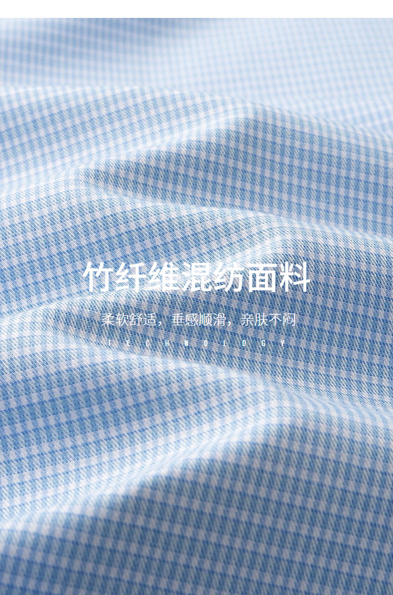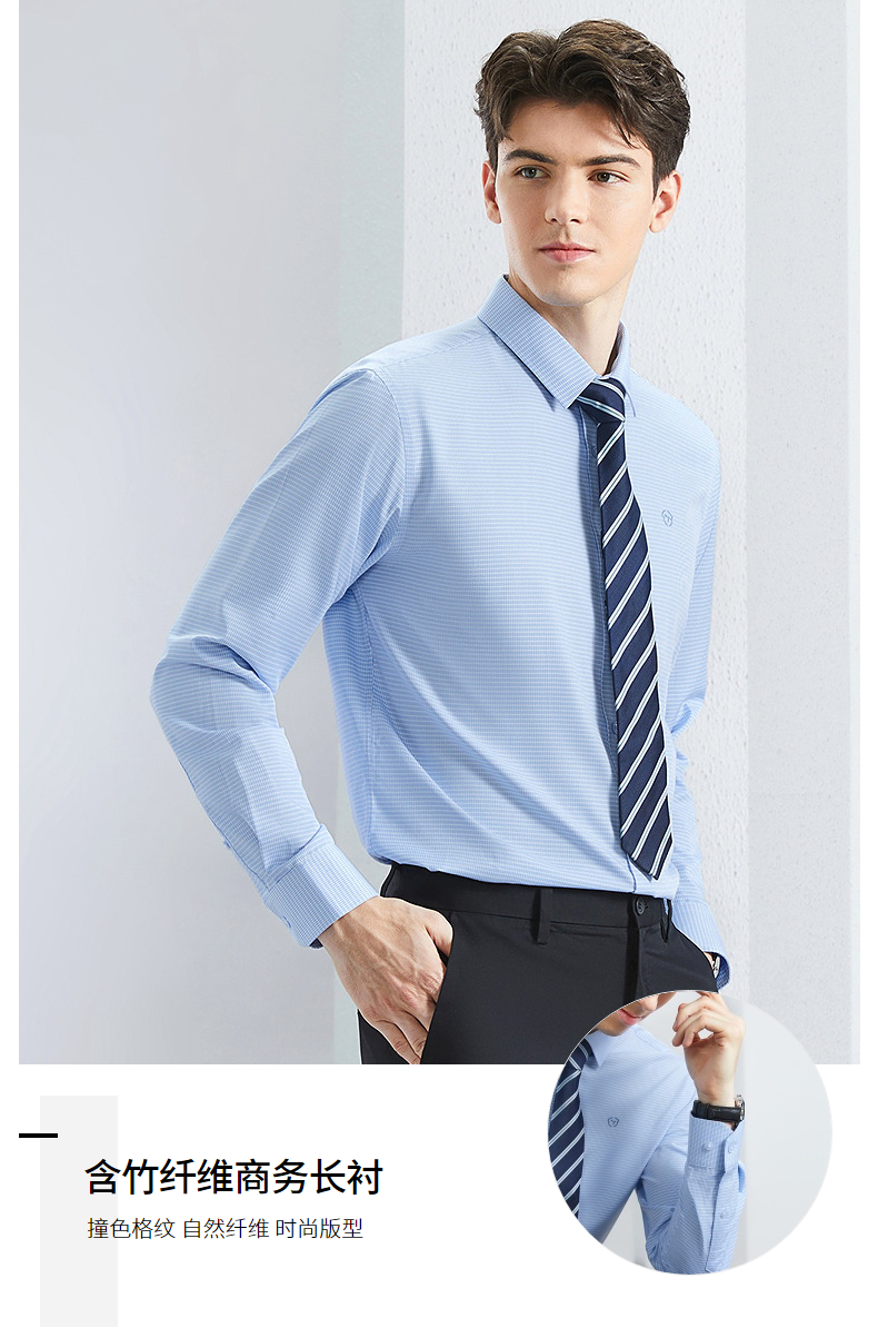 【含竹纤维】柒牌男装格纹长袖衬衫2024春季新款撞色休闲翻领衬衣 126A71080