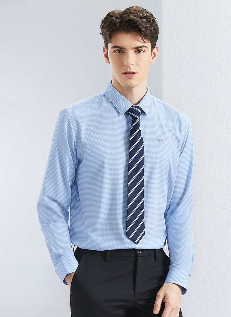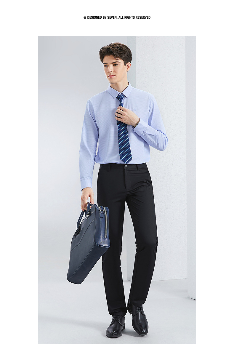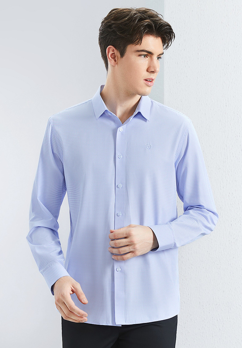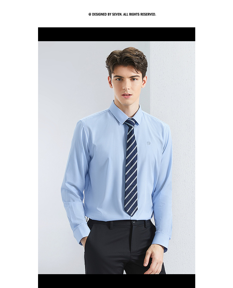 【含竹纤维】柒牌男装格纹长袖衬衫2024春季新款撞色休闲翻领衬衣 126A71080