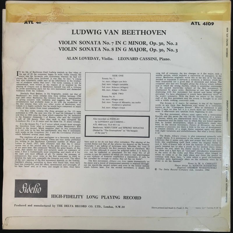 LP黑胶唱片 贝多芬《小提琴第七号和第八号奏鸣曲》 小提琴艾伦·洛维迪 钢琴伦纳德·卡西尼