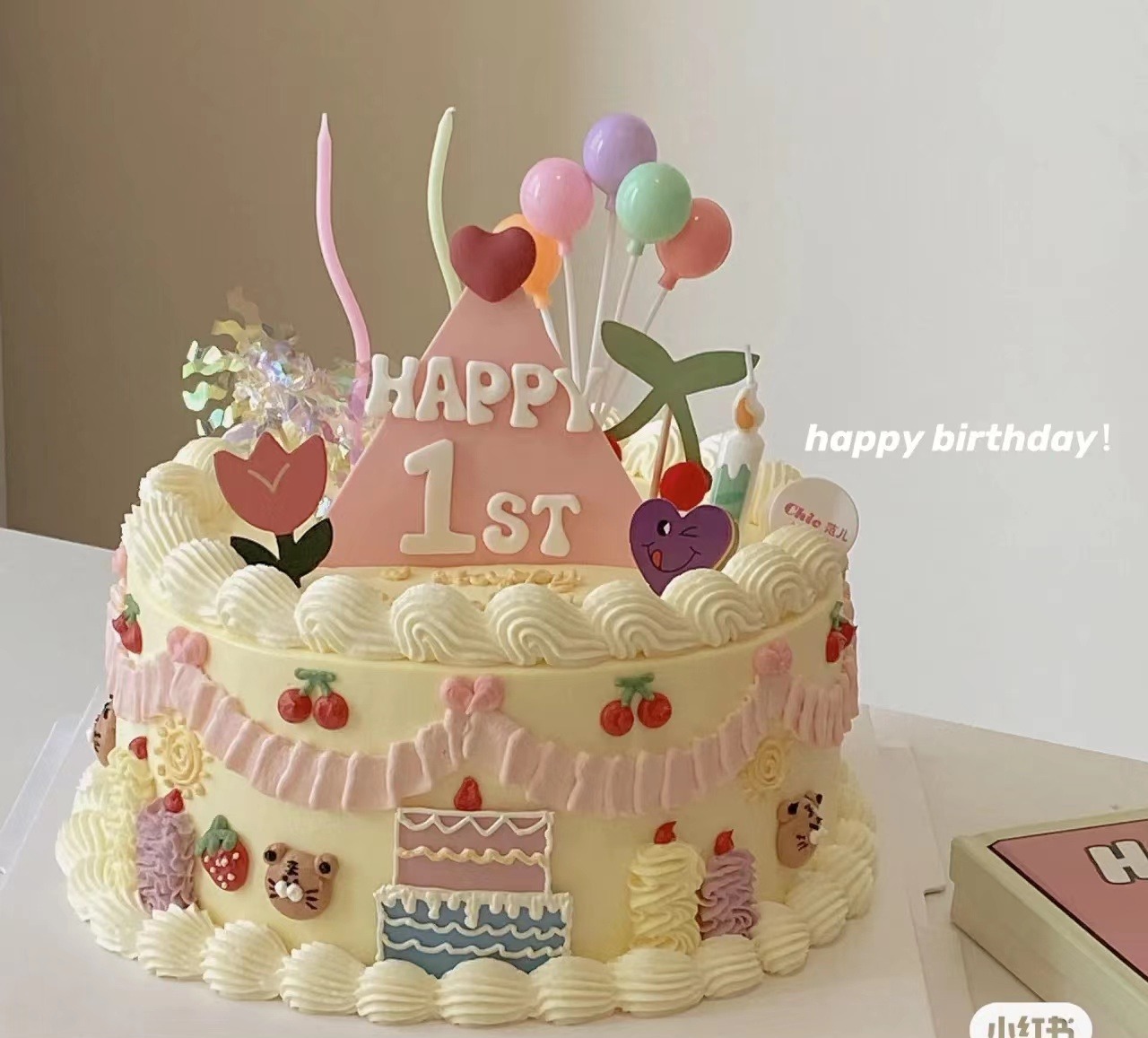 【臻品系列】---【粉色小龙龙 双层款】女孩、周岁生日蛋糕