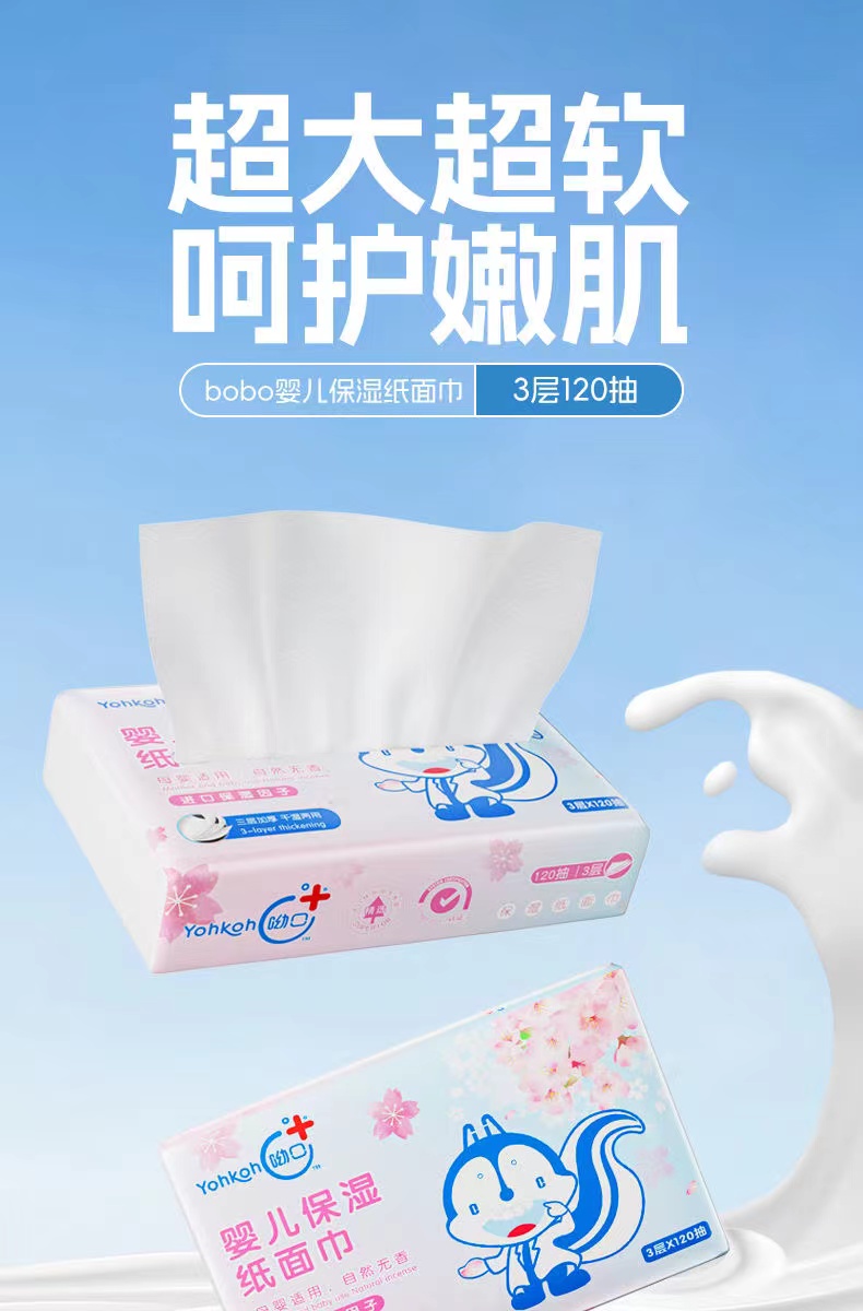 {春节不打烊} bobo婴儿保湿纸面巾120抽*16包