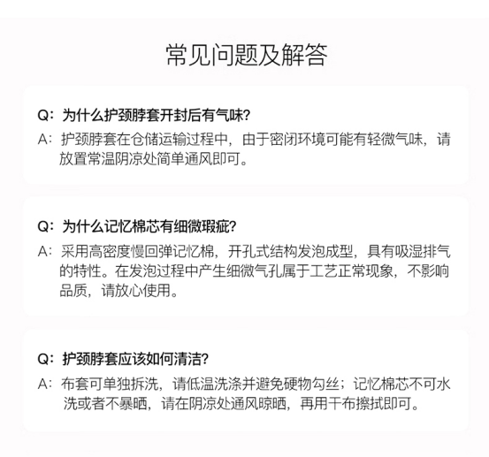 颈脖套采用高密度慢回弹记忆棉 承托的同时又不勒到脖子 不易变形,戴上超级酥服 让人常常忽略它的存在