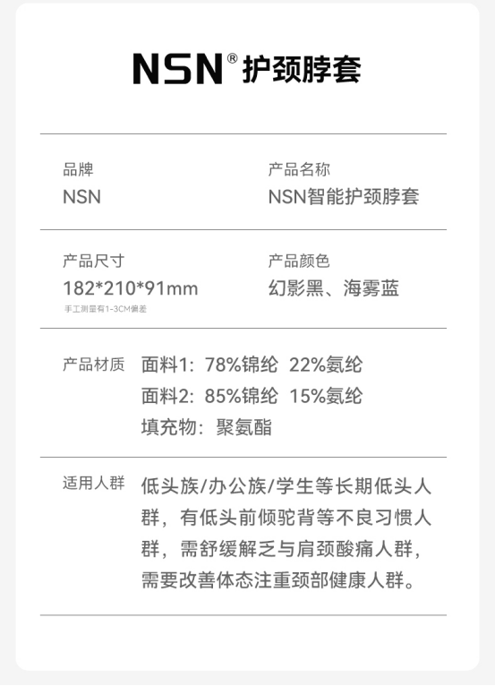 最后来说说品牌NSN 可不是普通杂牌子哦 家居界的佼佼者 他们家的脖套是市面上难得获得了人类工效学认证的 咱们现在49元带回家,超值不只一点点!!