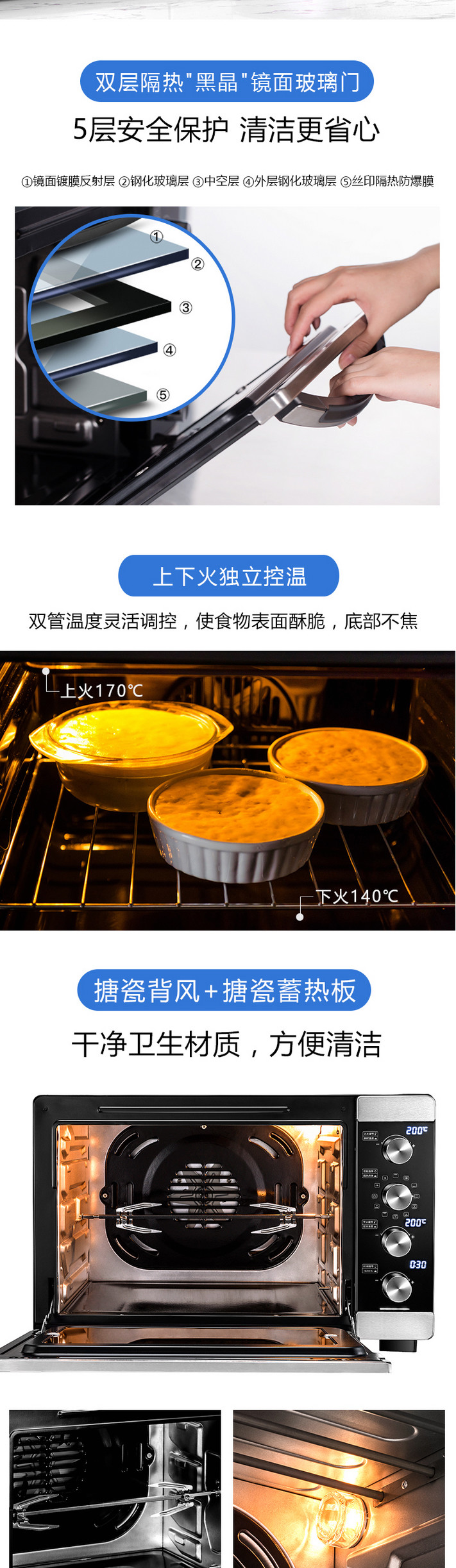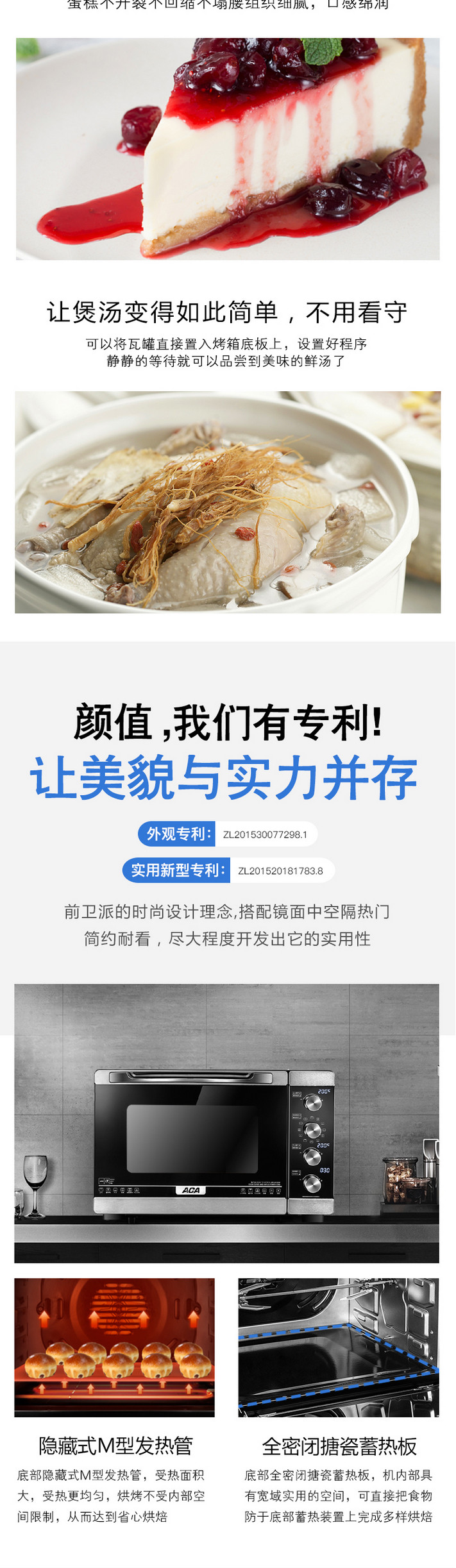 北美电器(ACA) 电烤箱家用 40L电子式 高端智能背部大热风 背部涡轮热风循环独立控温GT400 40升 GT400