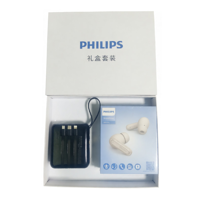 飞利浦PHILIPS真无线蓝牙耳机TAT2120主动降噪入耳式音乐通话耳麦高音质长续航【2件套礼盒装】配移动电源