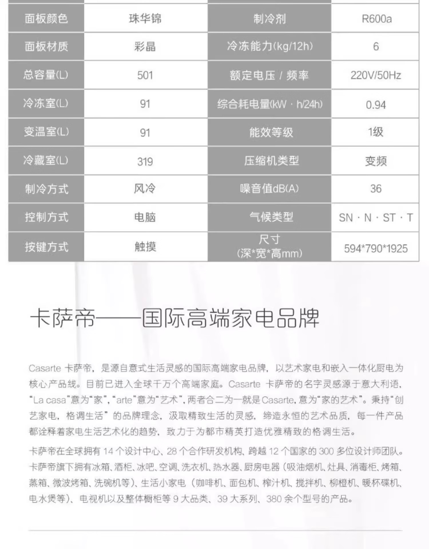 卡萨帝(Casarte)冰箱 BCD-501WGCTDM4GCU1