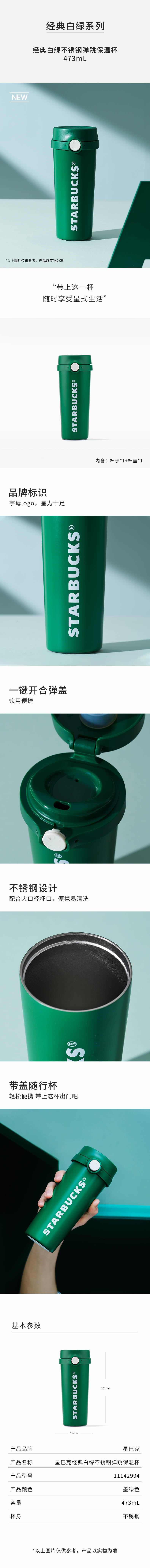 11142994 星巴克经典白绿不锈钢弹跳保温杯