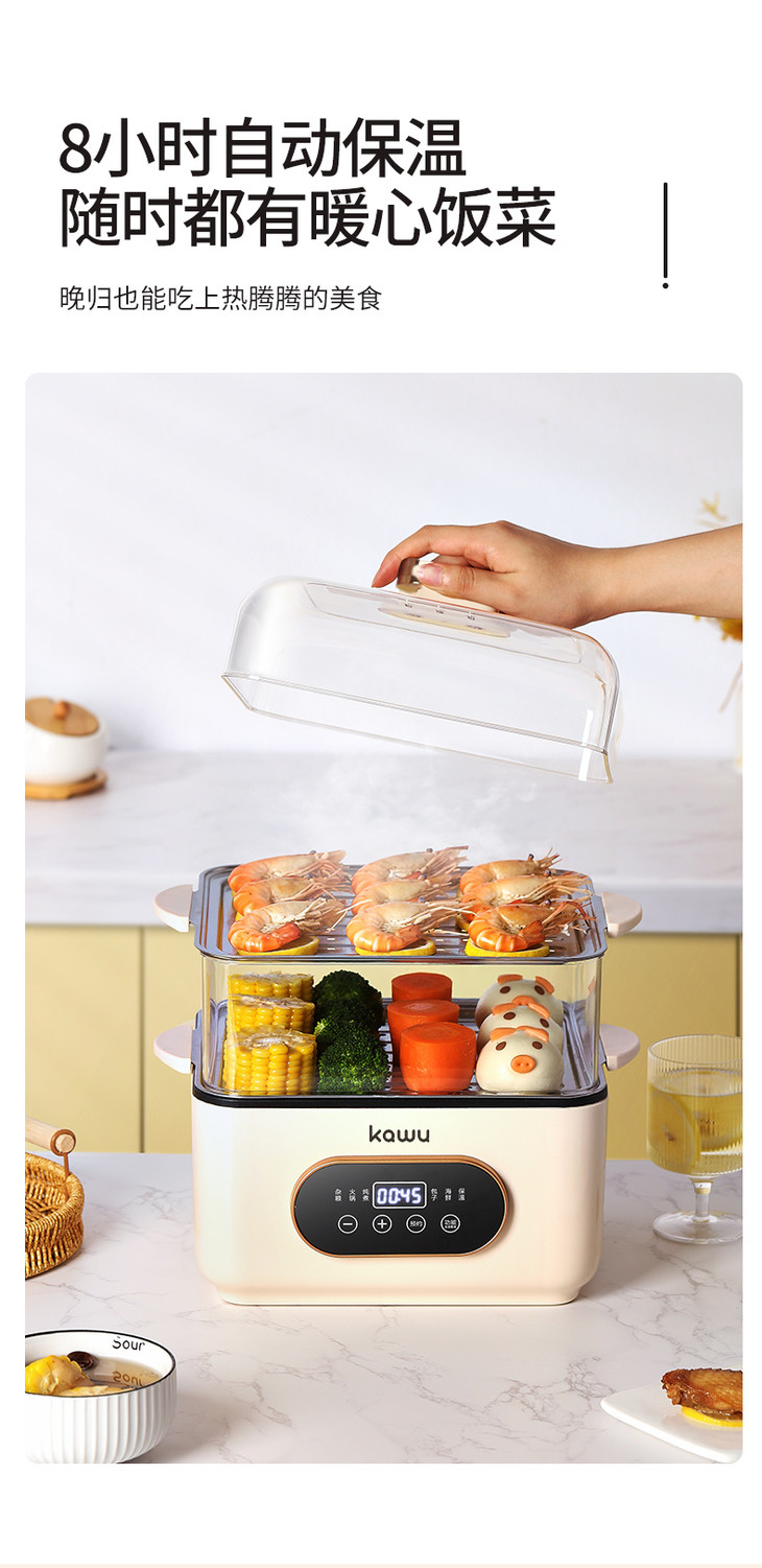 ✅8小时可调保温设计 下班回家吃着蒸层里的蒸食, 下层还咕噜咕噜冒着热气, 真是食欲爆棚,幸福感满满!