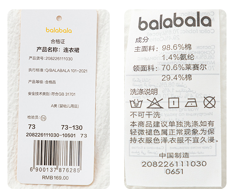 【balaOne】巴拉巴拉宝宝裙子婴儿连衣裙2026新款甜美文艺学院风