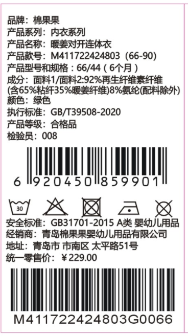 棉果果专柜同款冬季新品男童暖姜绒对开连体衣M411722424803