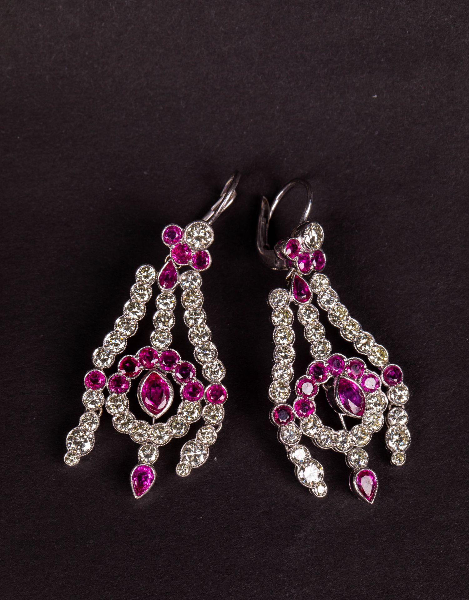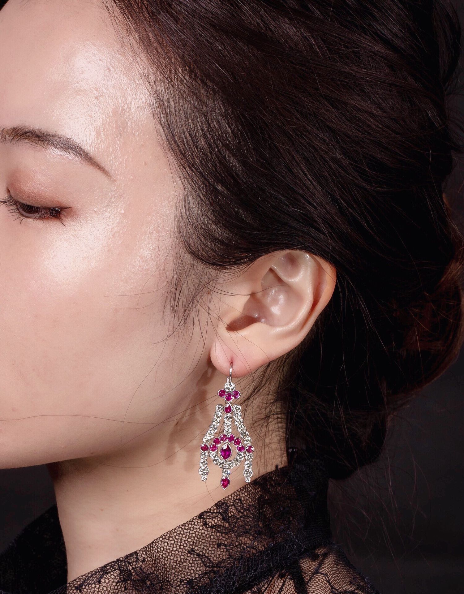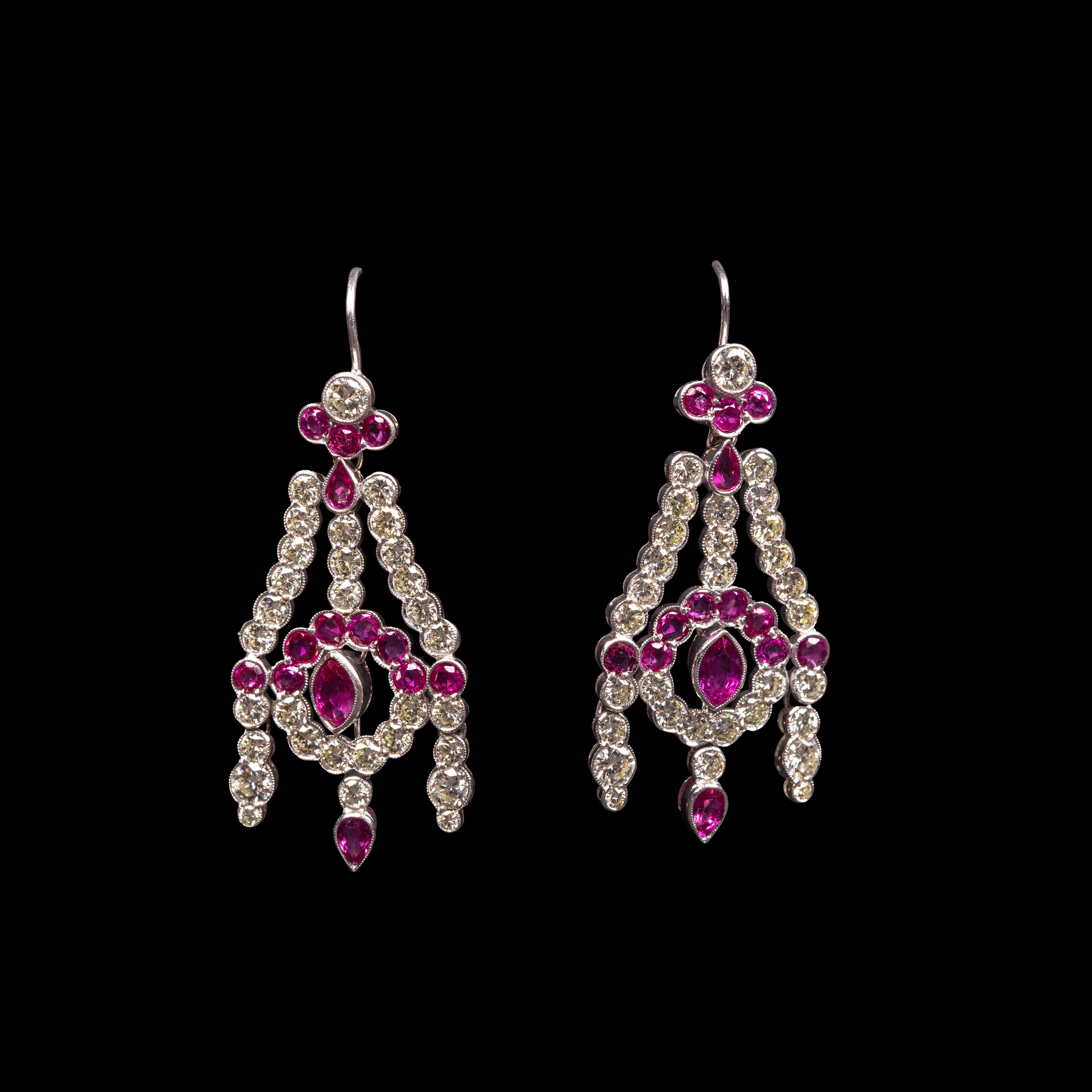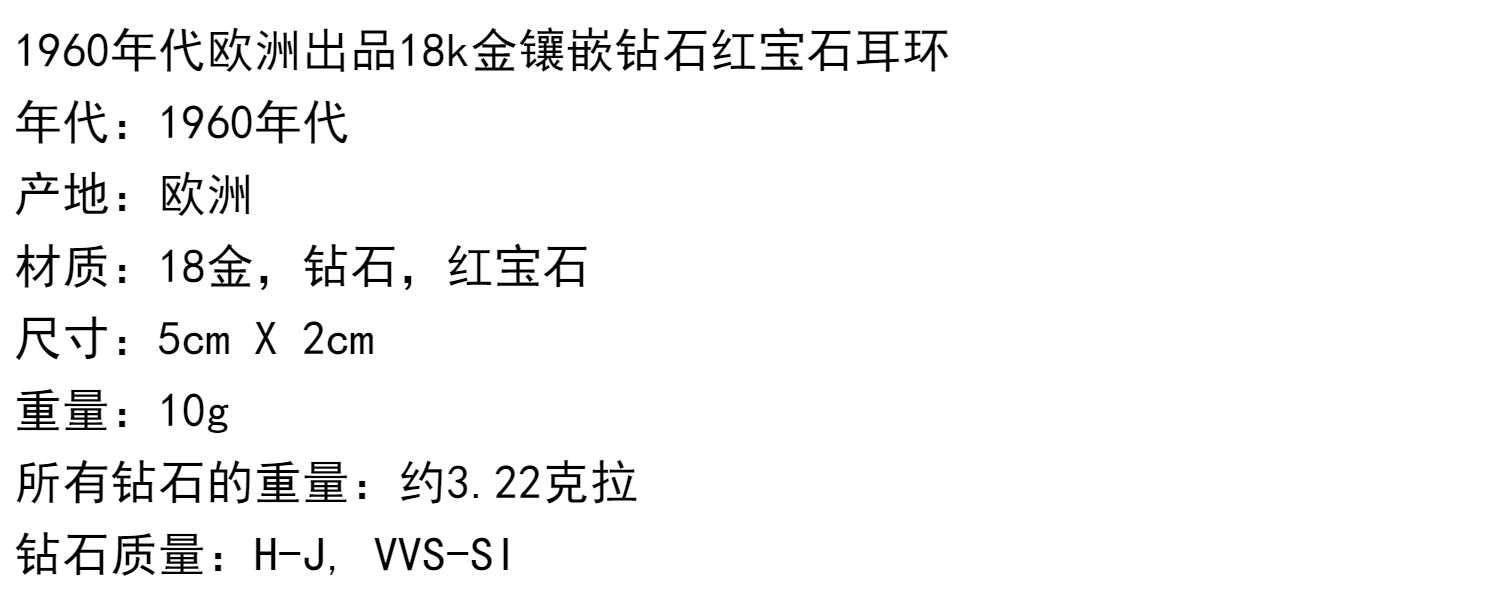 独角鹿西洋古董珠宝首饰欧洲18k金镶嵌钻石红宝石耳环耳坠耳饰