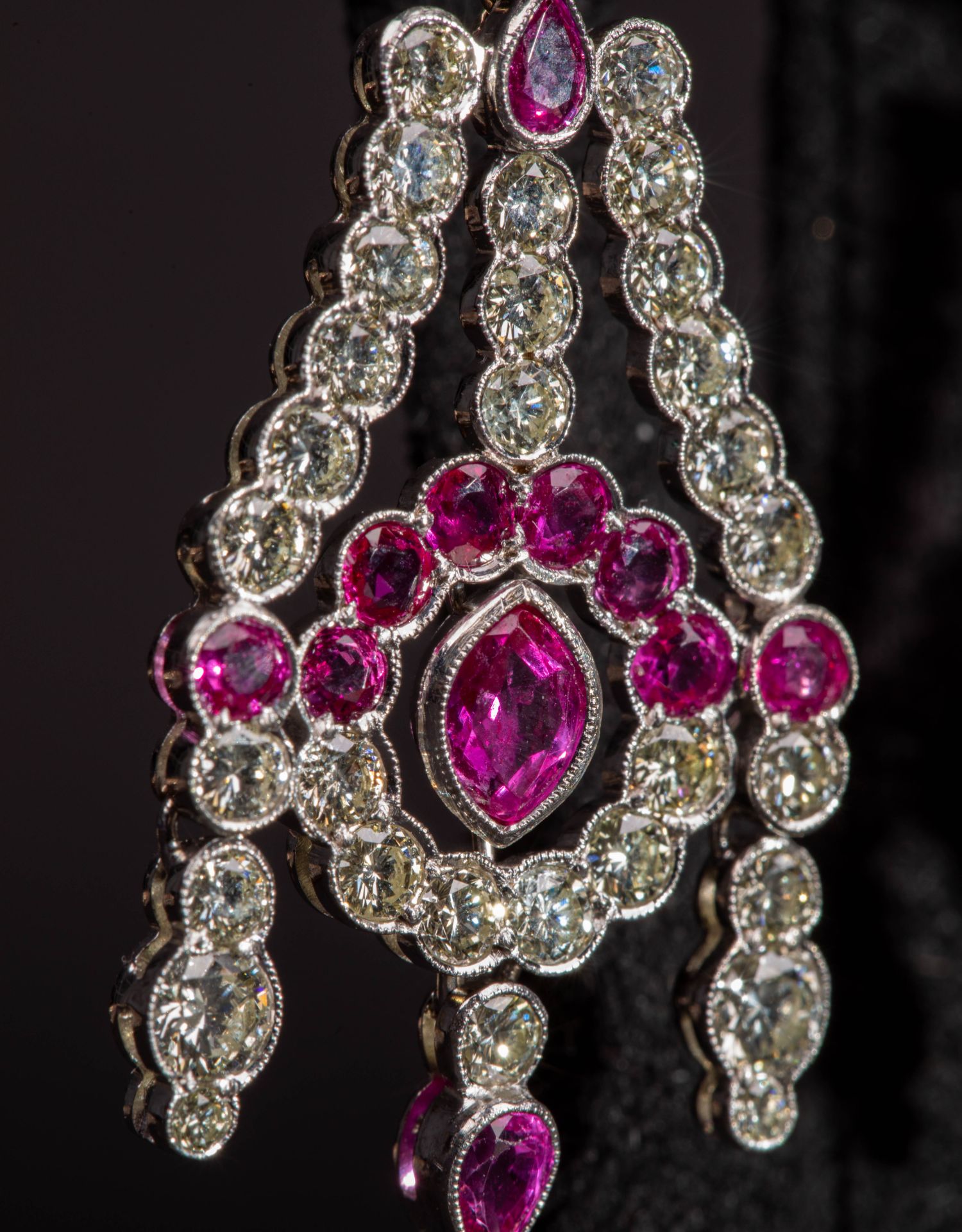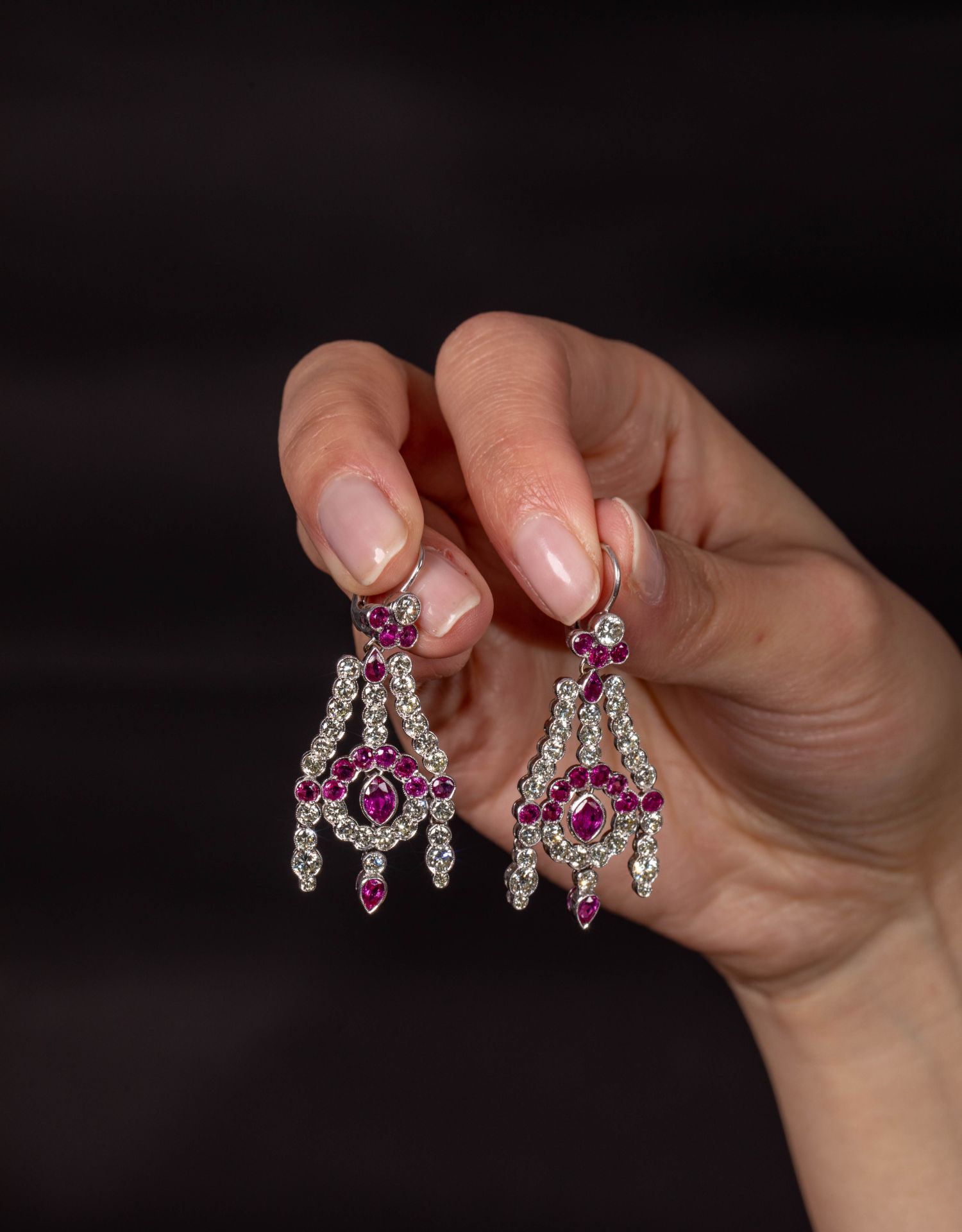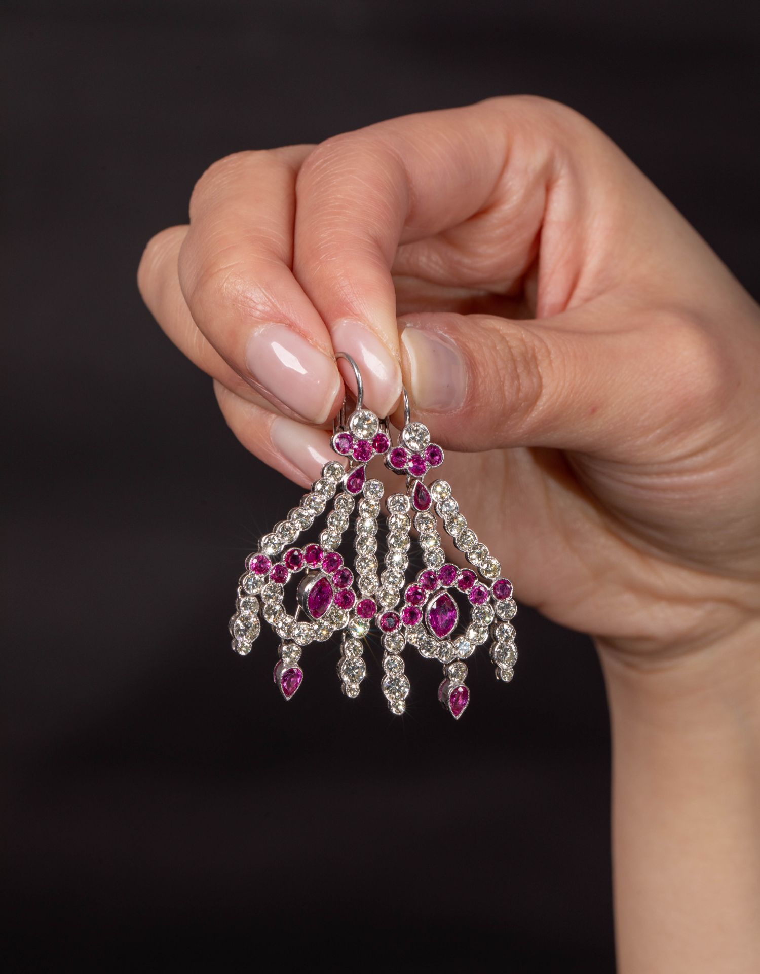 独角鹿西洋古董珠宝首饰欧洲18k金镶嵌钻石红宝石耳环耳坠耳饰