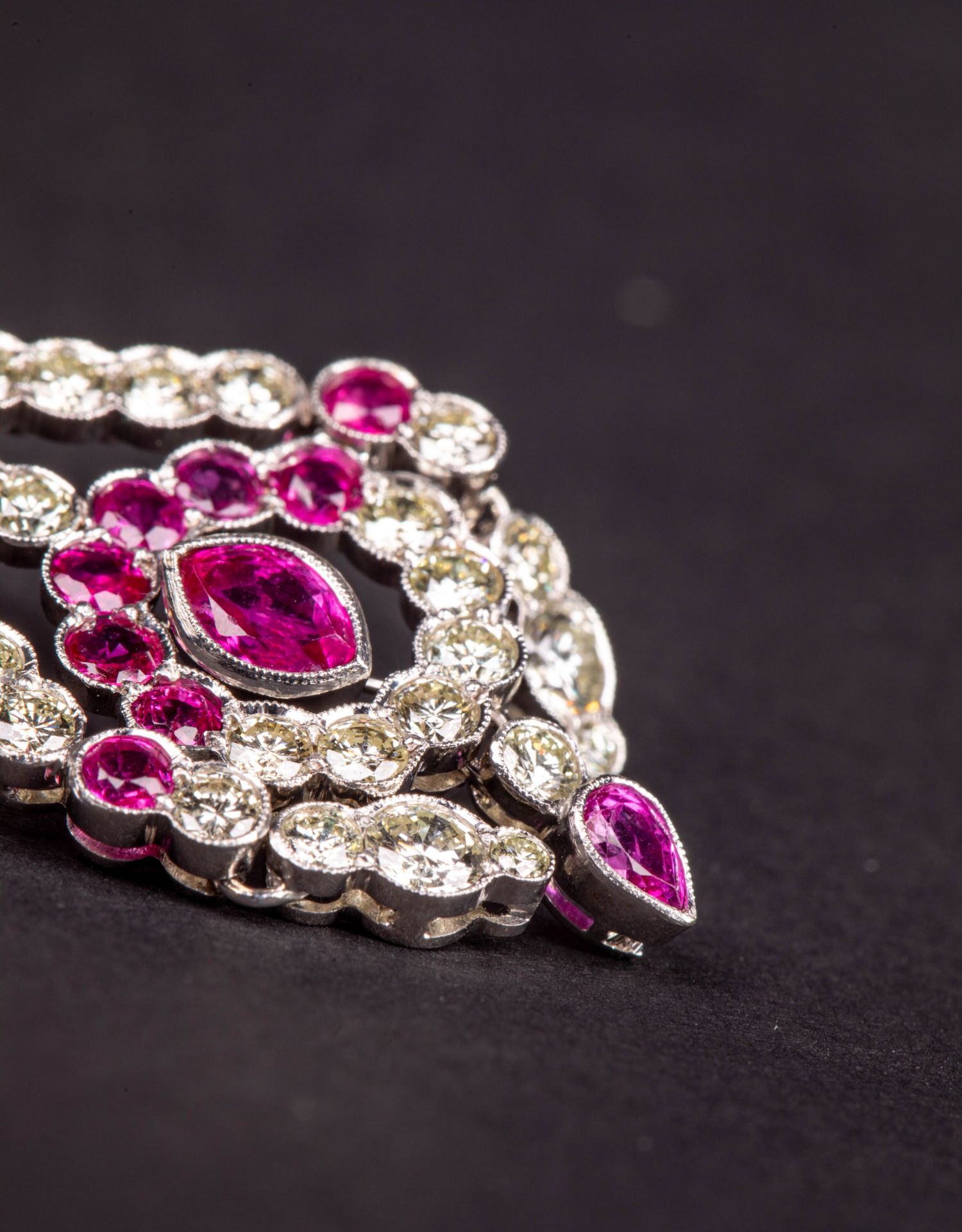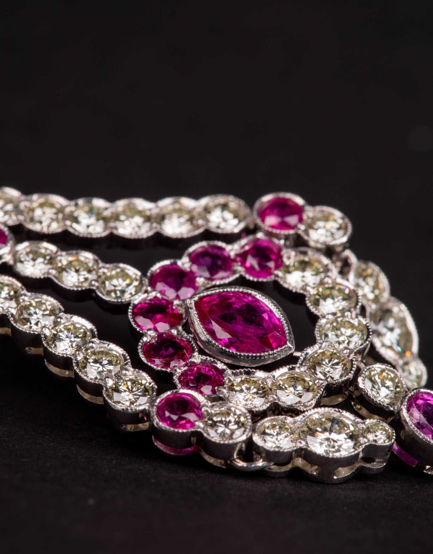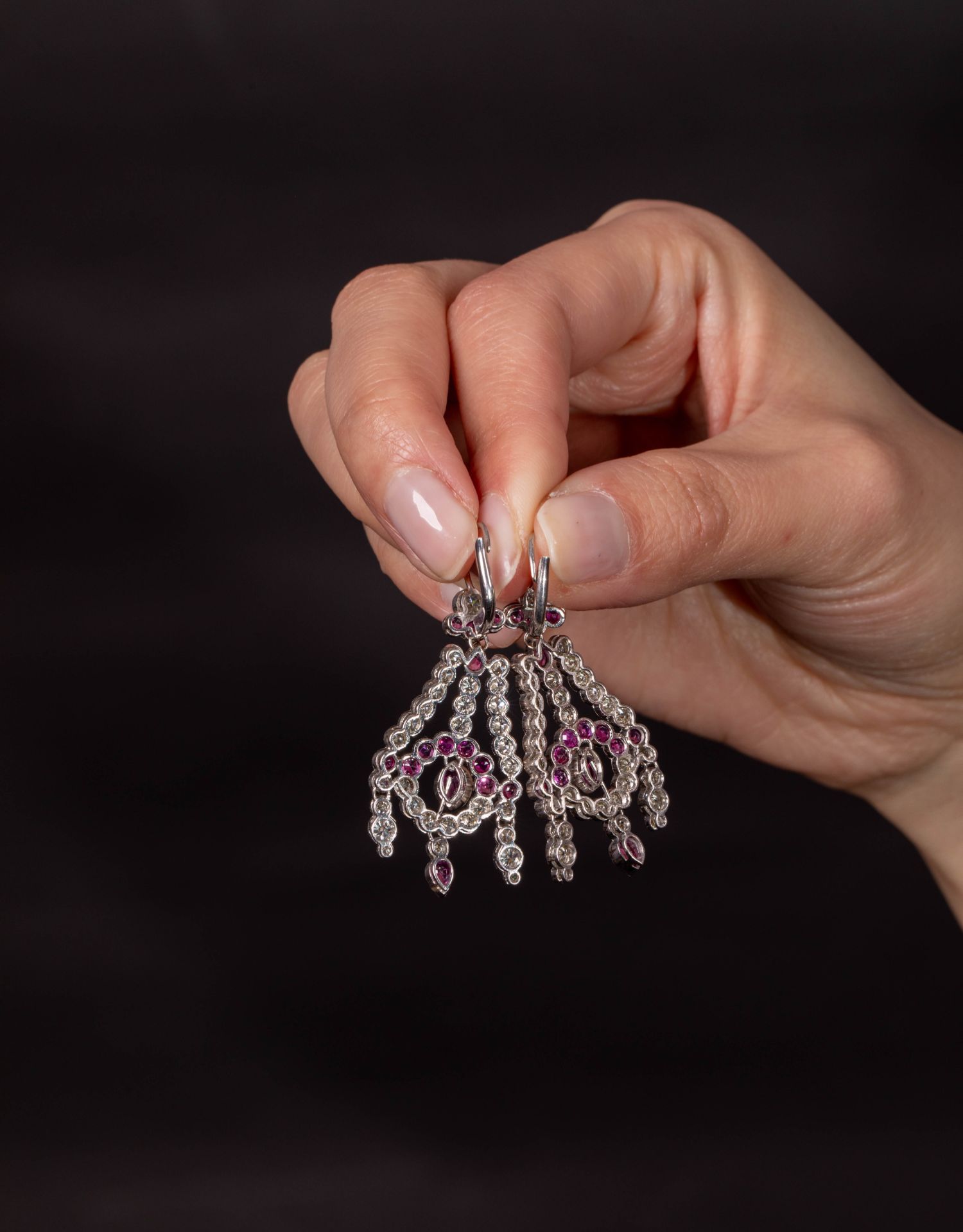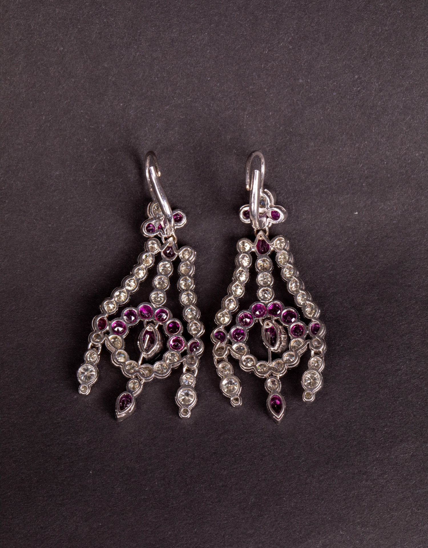 独角鹿西洋古董珠宝首饰欧洲18k金镶嵌钻石红宝石耳环耳坠耳饰