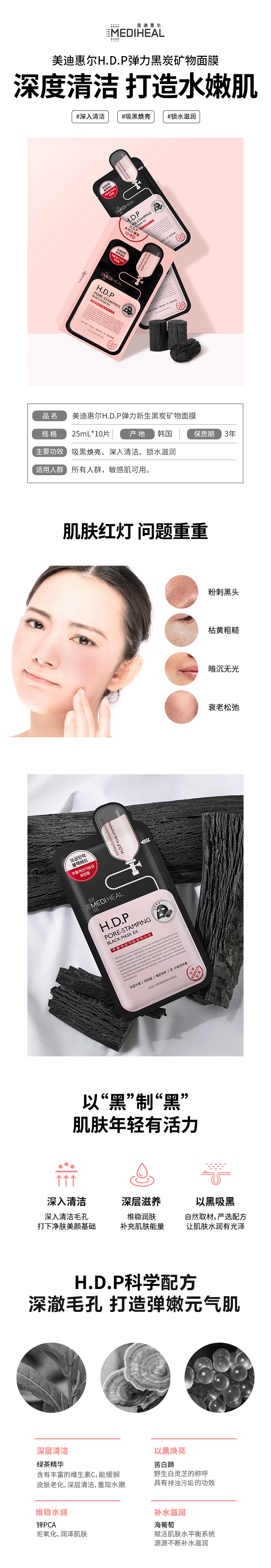 【中欧班列精选】韩国美迪惠尔弹力黑炭矿物面膜10片/盒