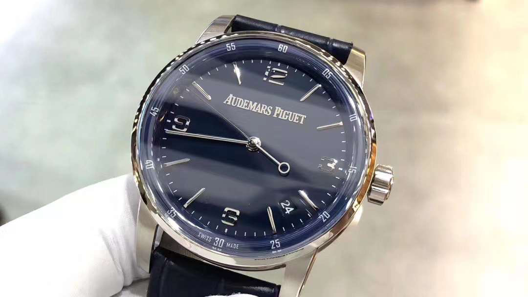 TNK臻品(2020新款推荐) 爱彼CODE 11.59系列腕表 在突破创新的基础上延续了品牌的经典因素【表盘】每张表盘面都是根据原装塘瓷制作,瓷质晶莹洁白,刻度圈为三色"陶瓷材料"制作过程损耗较大,所以能出现在成表里都是精华,原装一样的纹理【表壳】尺寸41mm 润中带锐的新造型 一笔一划都必须承认CNC的精准高要求【机芯】独家定制机Cal.4302机,振频28800 【表扣、皮带】与原装同步针扣,大Logo清晰完美,搭配进口双面小牛皮材质 ——最有意思的型号解释 CODE 11.59:有明天就有希望,再过一分钟就是全新的一天!