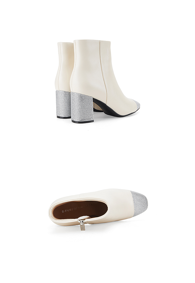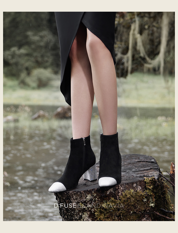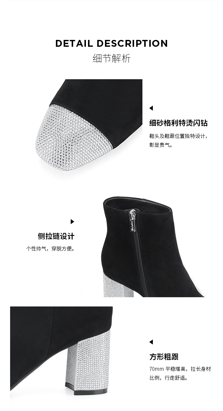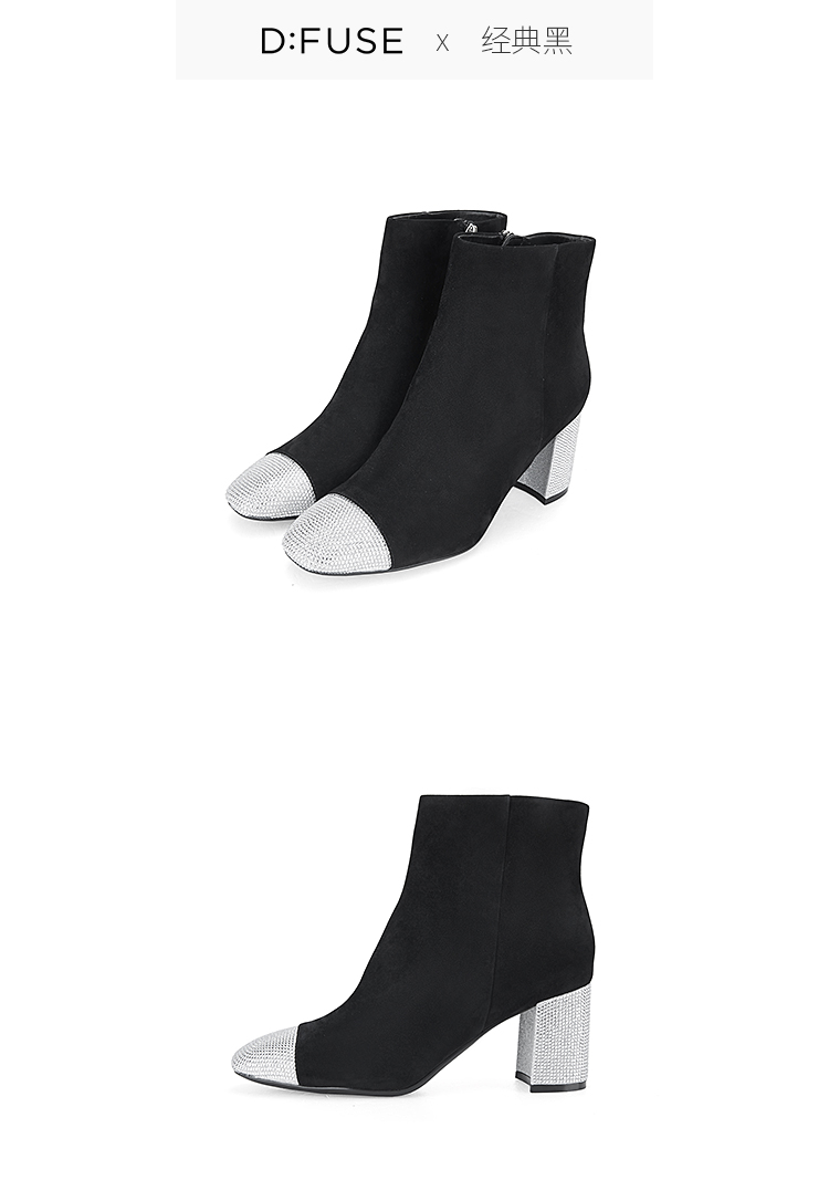 D:fuse迪芙斯冬季新款气质烫钻拼色细跟短靴女靴DF34116107