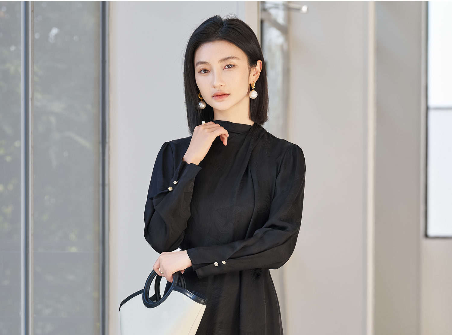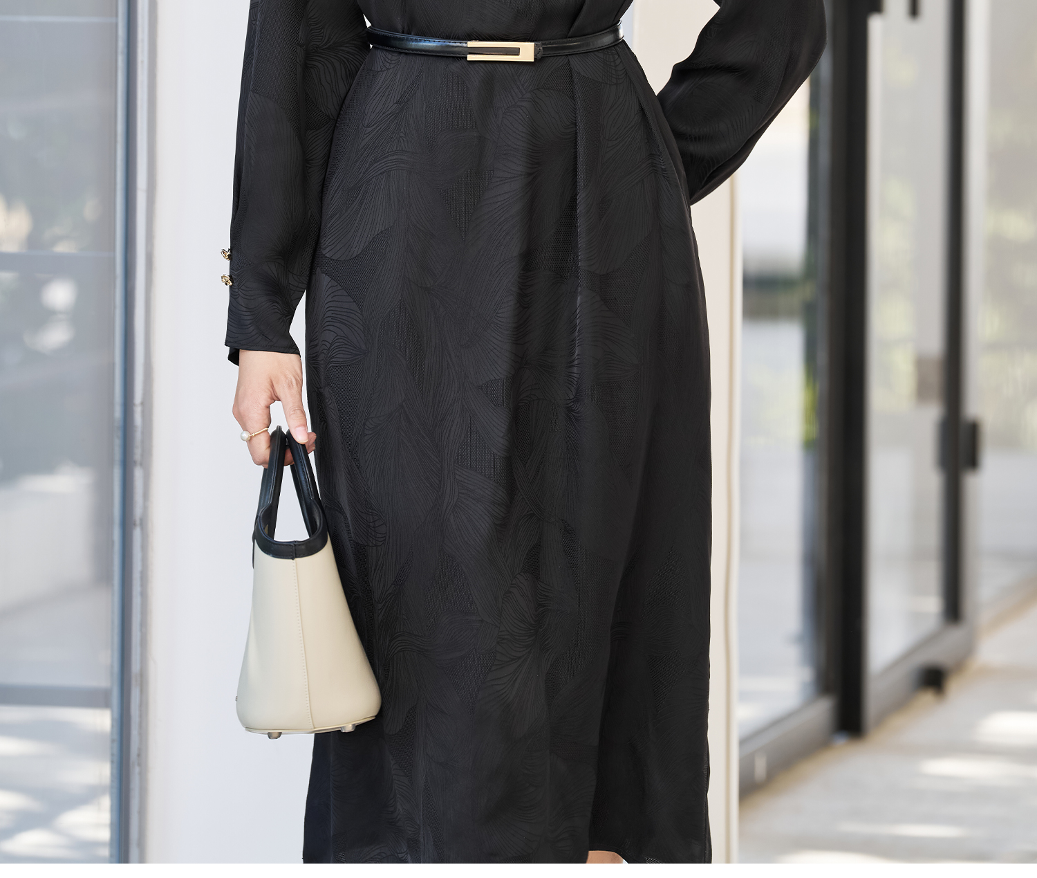 剩S/M/L/XL 米思阳2026春季新款新中式轻奢高级感连衣裙暗提花缎面光泽长裙子