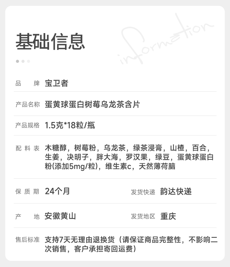 【蛋黄球蛋白树莓乌龙茶含片】十种草本加蛋黄球蛋白 清新口气【AA】