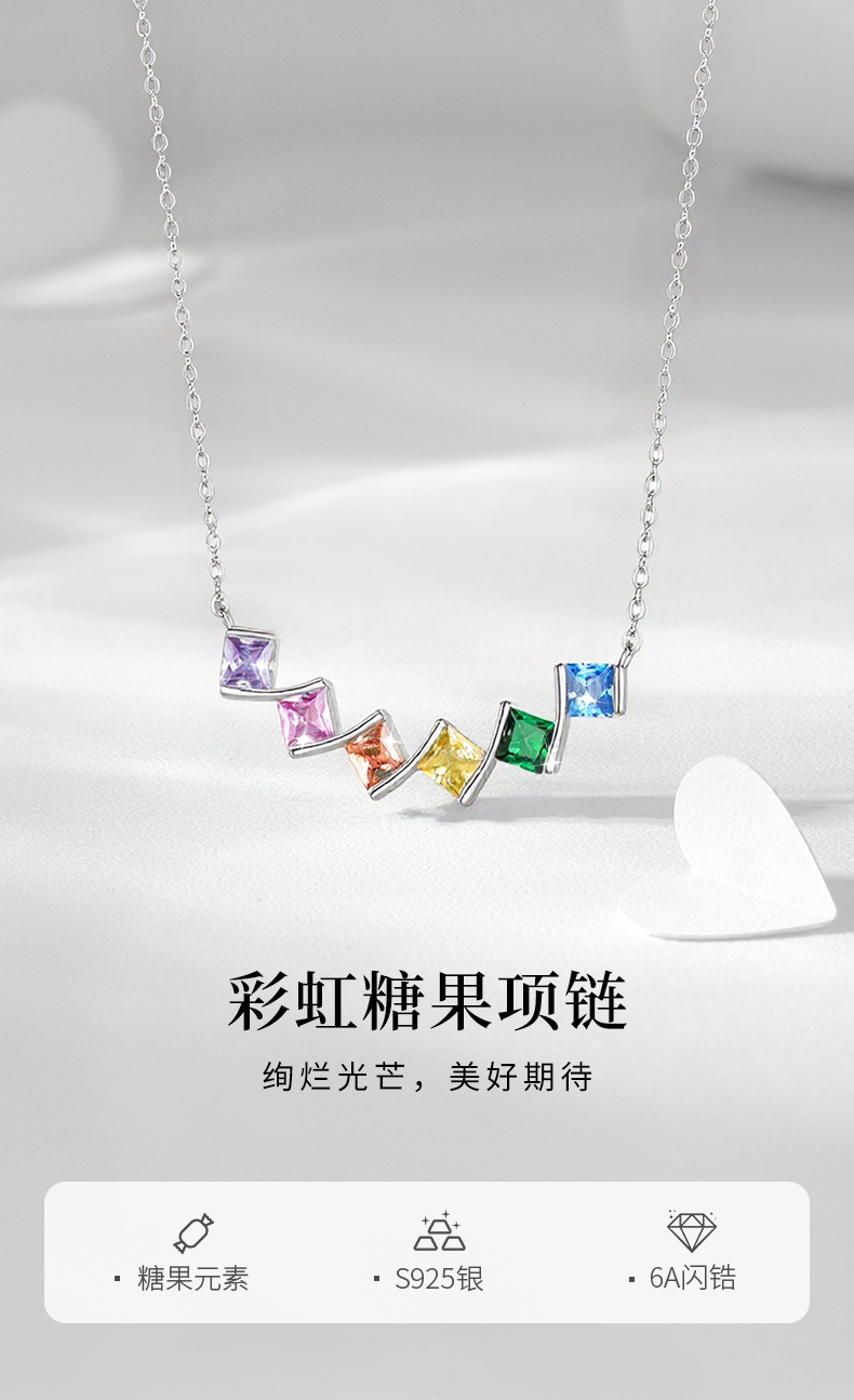 卡蒂罗KADER 彩虹糖果项链 925银明媚彩色多巴胺微笑锁骨链 俏皮可爱少女心经典设计感精致百搭