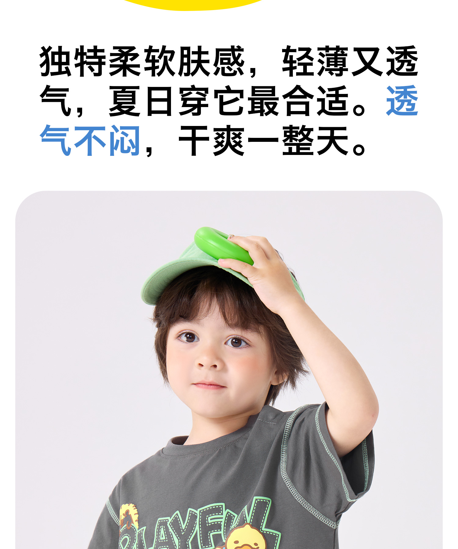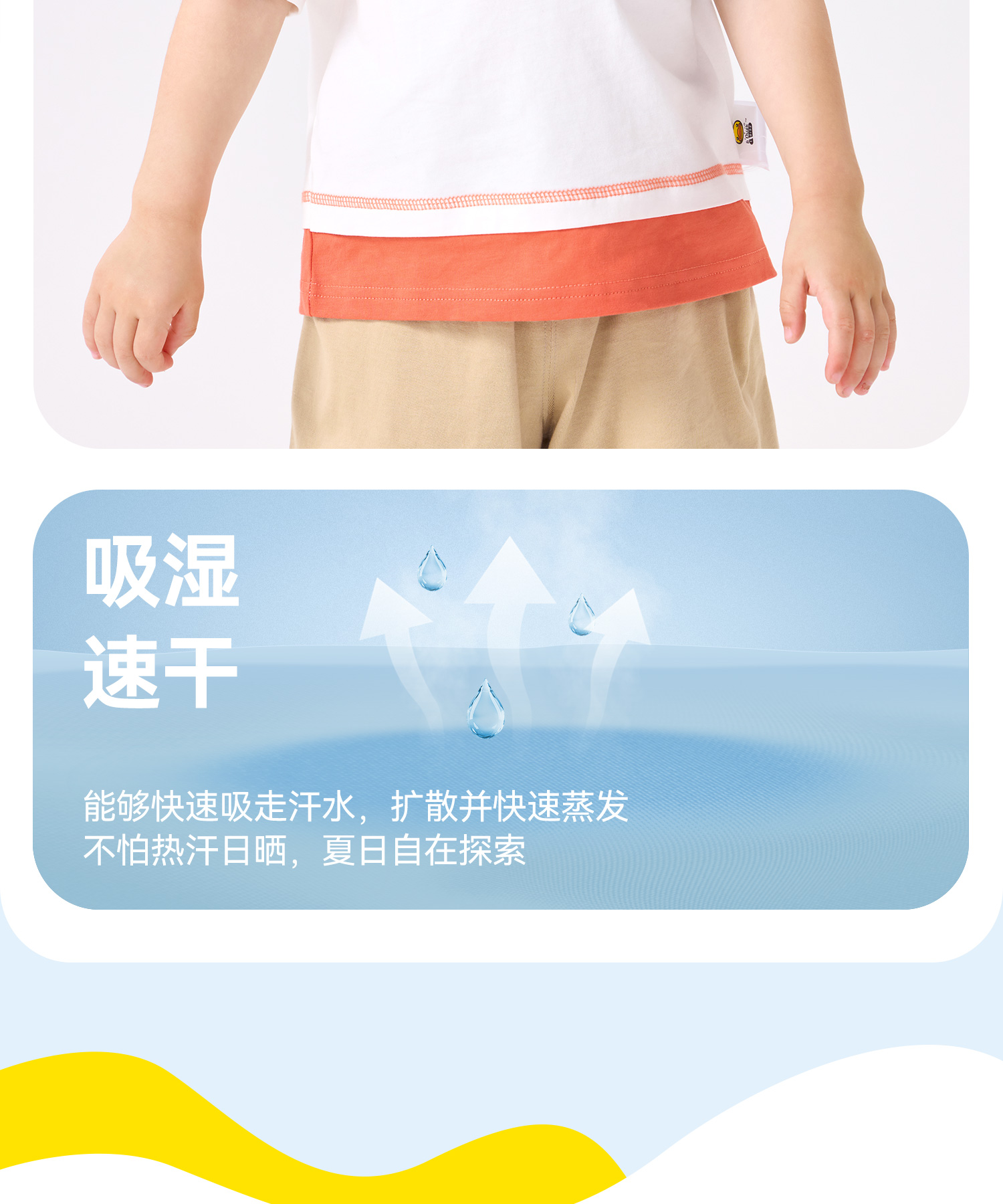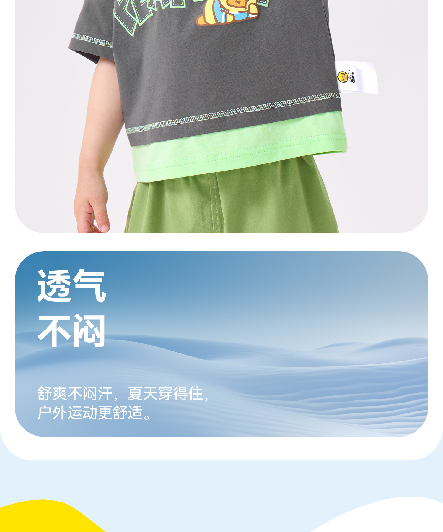 [冰感速干]bduck小黄鸭童装男童短袖T恤速干衣宝宝凉感儿童夏装薄90-140 BF2701036
