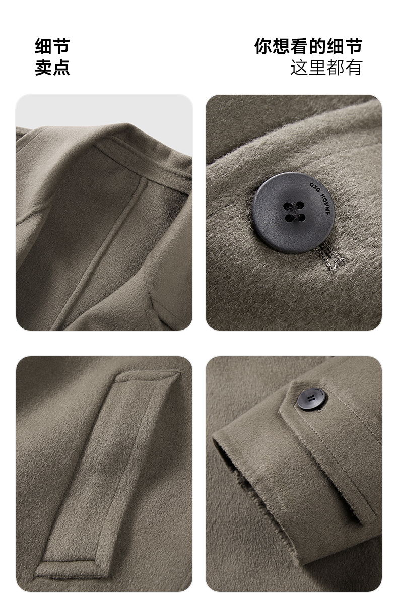 GXG男装 深卡其宽松保暖通勤长款大衣24冬热卖G24X264007