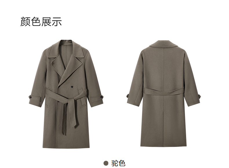 GXG男装 复古大翻领通勤双排扣长款大衣外套 24年冬季