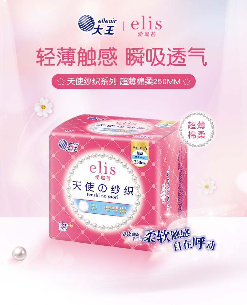 大王爱璐茜天使超薄棉柔250卫生巾18片