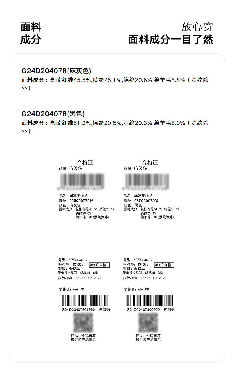 GXG男装 秋冬热卖GXG男士含羊毛轻柔贴肤半高领毛衣打底针织衫男