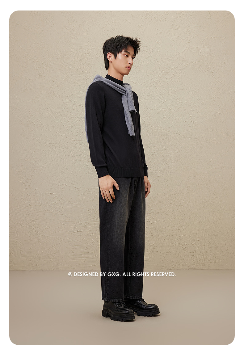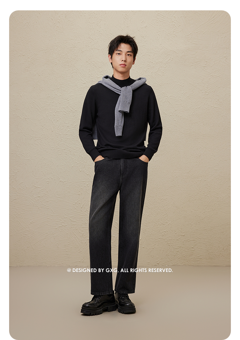 GXG男装 半开襟毛衣满印设计针织衫通勤高领毛衫 2025年冬季新品